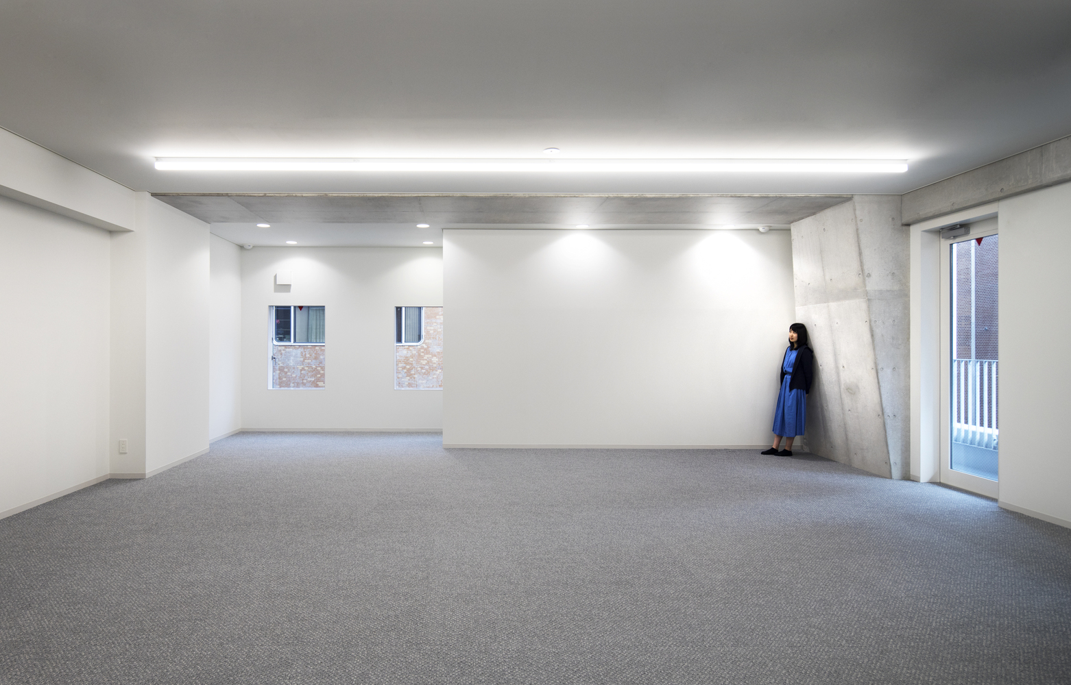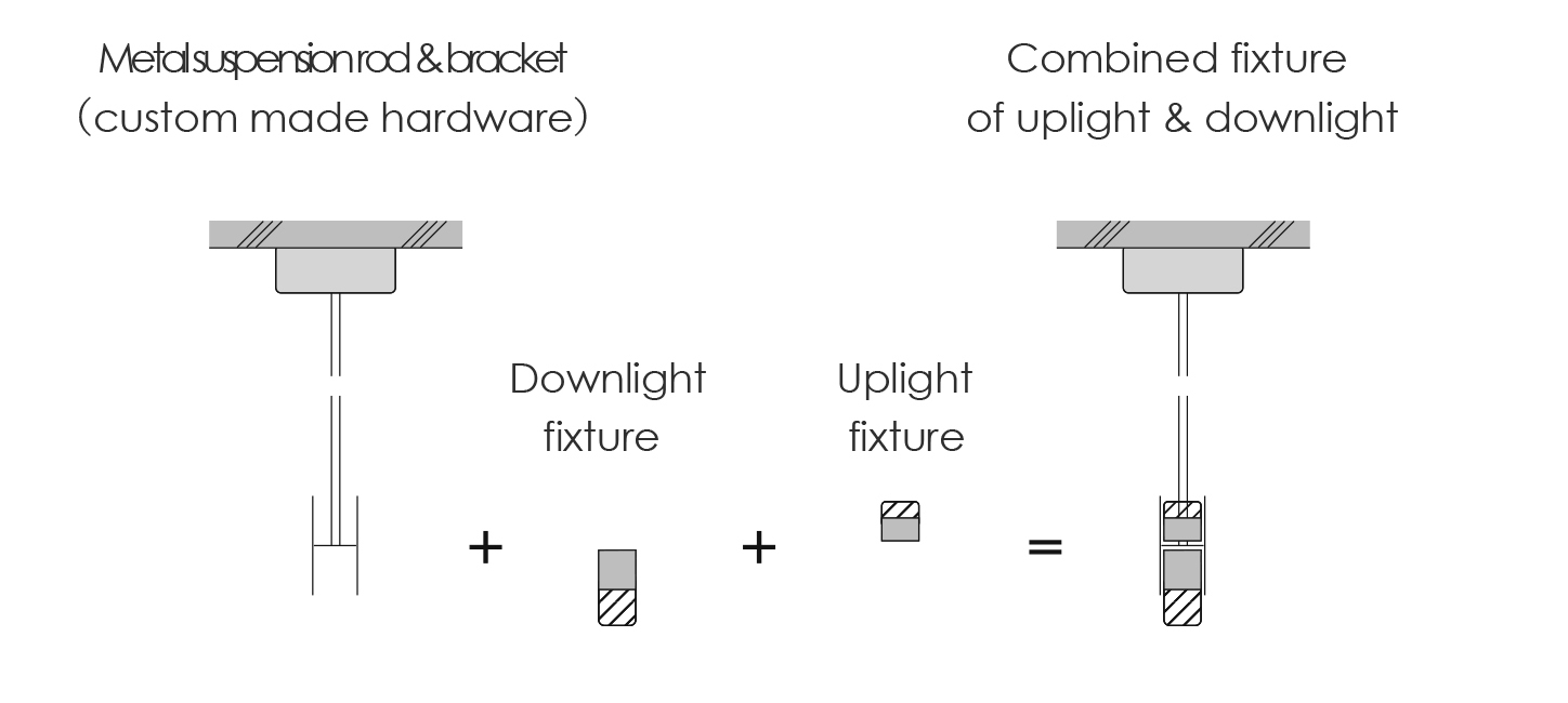 Lighting plan to create a sense of “expanse” To help the office spaces feel more spacious, the exposed concrete ceilings of the owner’s office floors (6F~8F) are illuminated utilizing a new linear system developed by combining ready-made up-light and downlight components to make the entire ceiling look bright. Through the combination of existing fixtures and components rather than a custom-made fixture, repair and maintenance is facilitated by simply replacing failed components. For the rental office floors (2F~5F), suspended ceilings are provided; however, the linear lighting fixtures are mounted directly on the ceiling providing a bright surface a similar way as the upper floors.