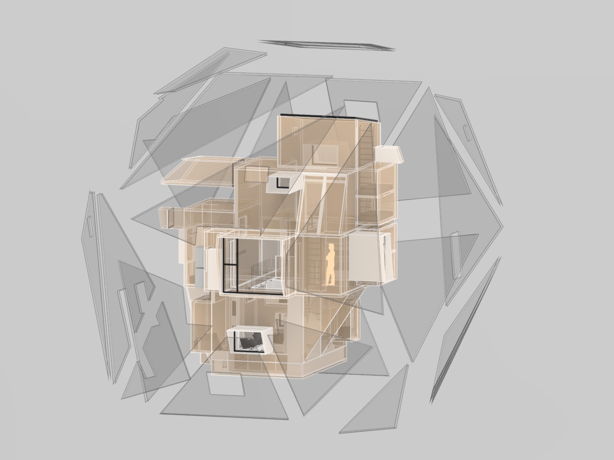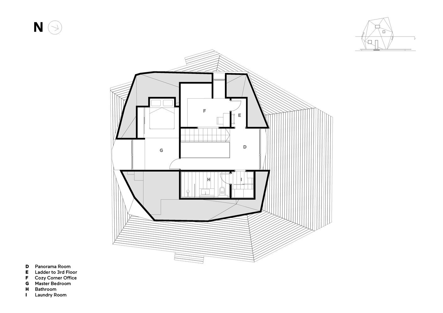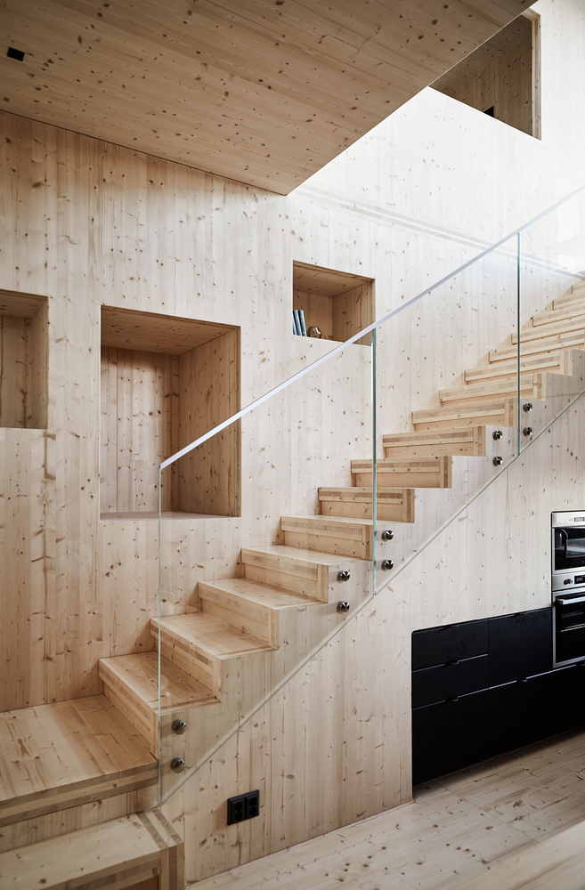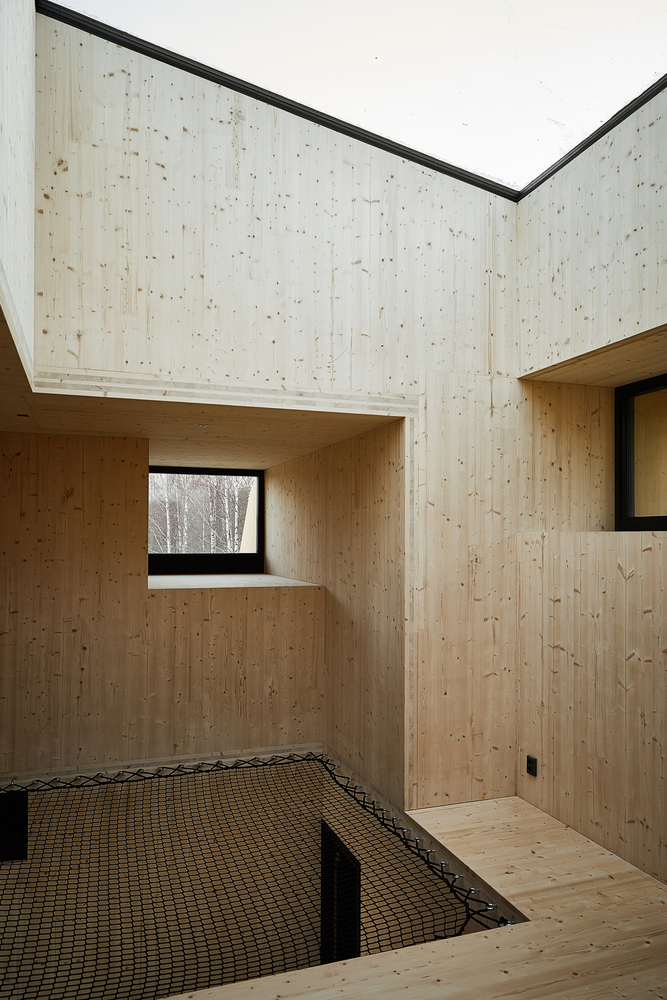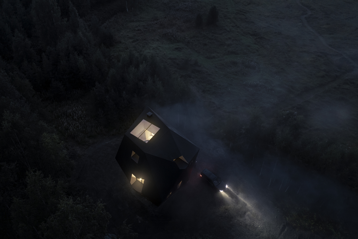 “Meteorite is not a large house, but on the inside, it represents a completely new 3-dimensional open-concept way of organizing living space,” says Ateljé Sotamaa co-founder Kivi Sotamaa. “Unlike traditional houses where each room has a specific predetermined purpose, Meteorite’s architecture supports more dynamic relationships of its residents and a variety of life situations. Digital design and new prefabrication and construction technologies enable the creation of unique, aesthetically high-quality ecological wood buildings that add experiential value to their locations.”