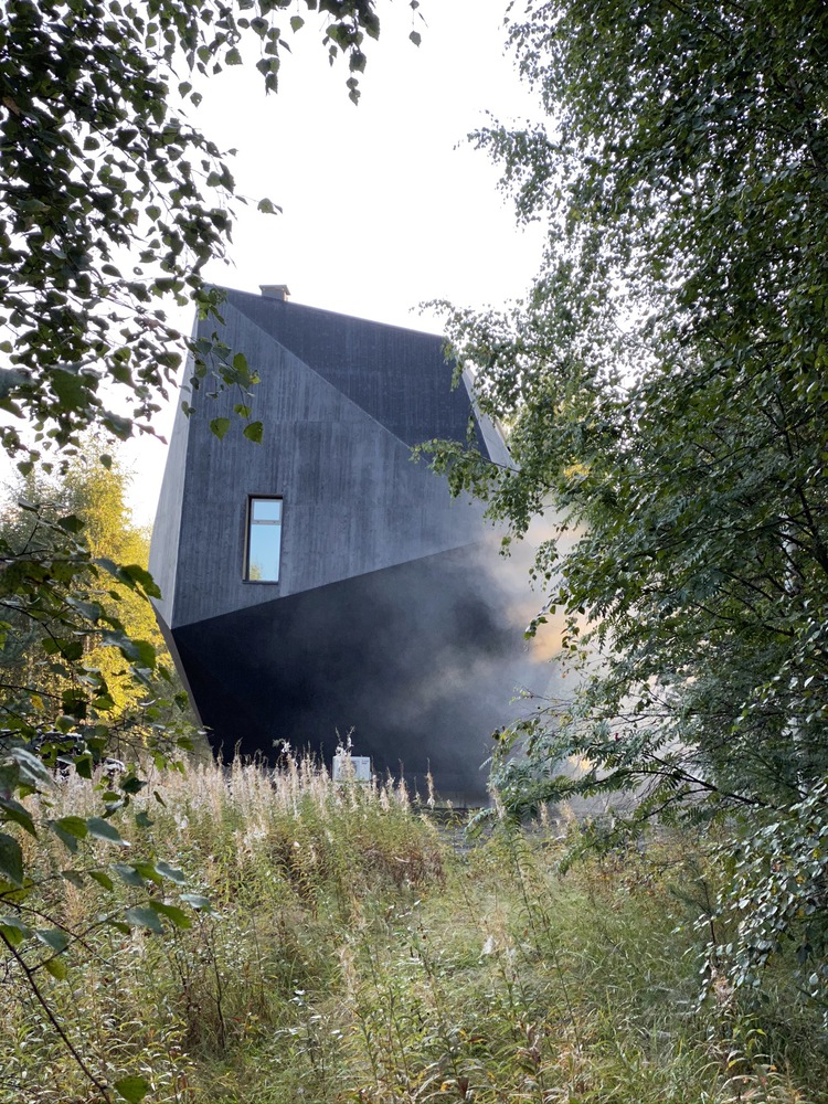 Healthy low-carbon building made of prefabricated components. At best, the massive wood walls of Meteorite contain 4 metres of air insulation, and all building services engineering and technology is hidden inside the walls. Inside the house, there is light Nordic wood all around, no plastic anywhere in the structure, and nothing prone to moulding. The roof, too, is of solid wood, oiled to resist the elements and age beautifully. The large windows bringing in nature are all electrically heated.