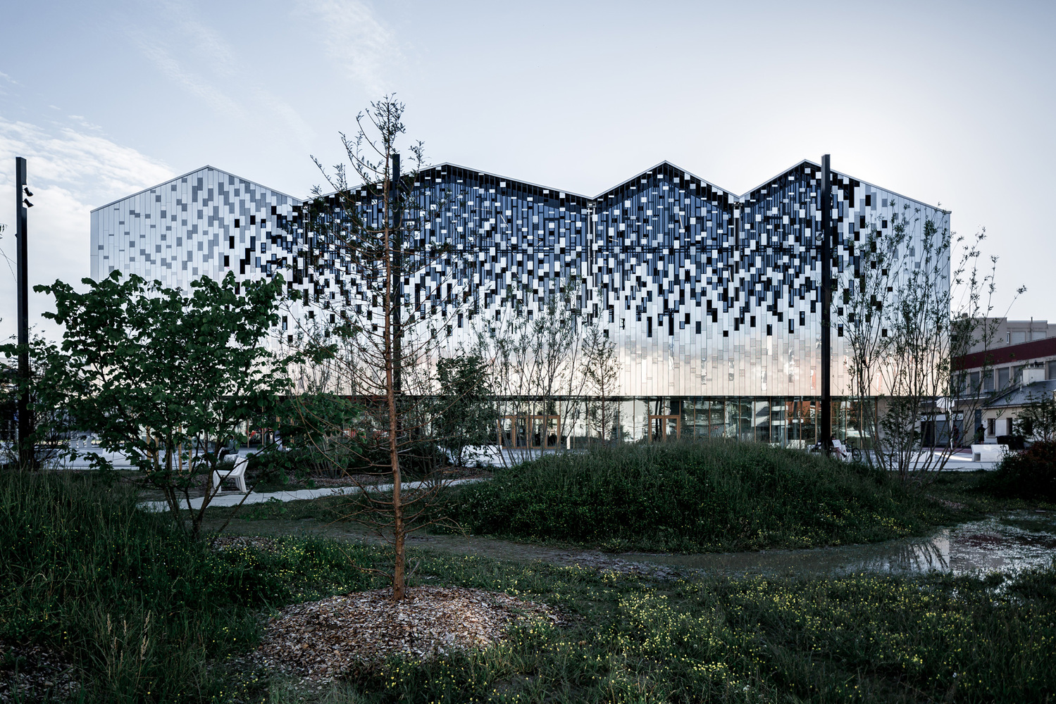 The project is therefore implemented with a dual appearance. He asserts an unchanging and powerful urban presence while dressing himself in a sensitive landscape animated by the pictorial reflections of his environment in general and of the public garden in particular.