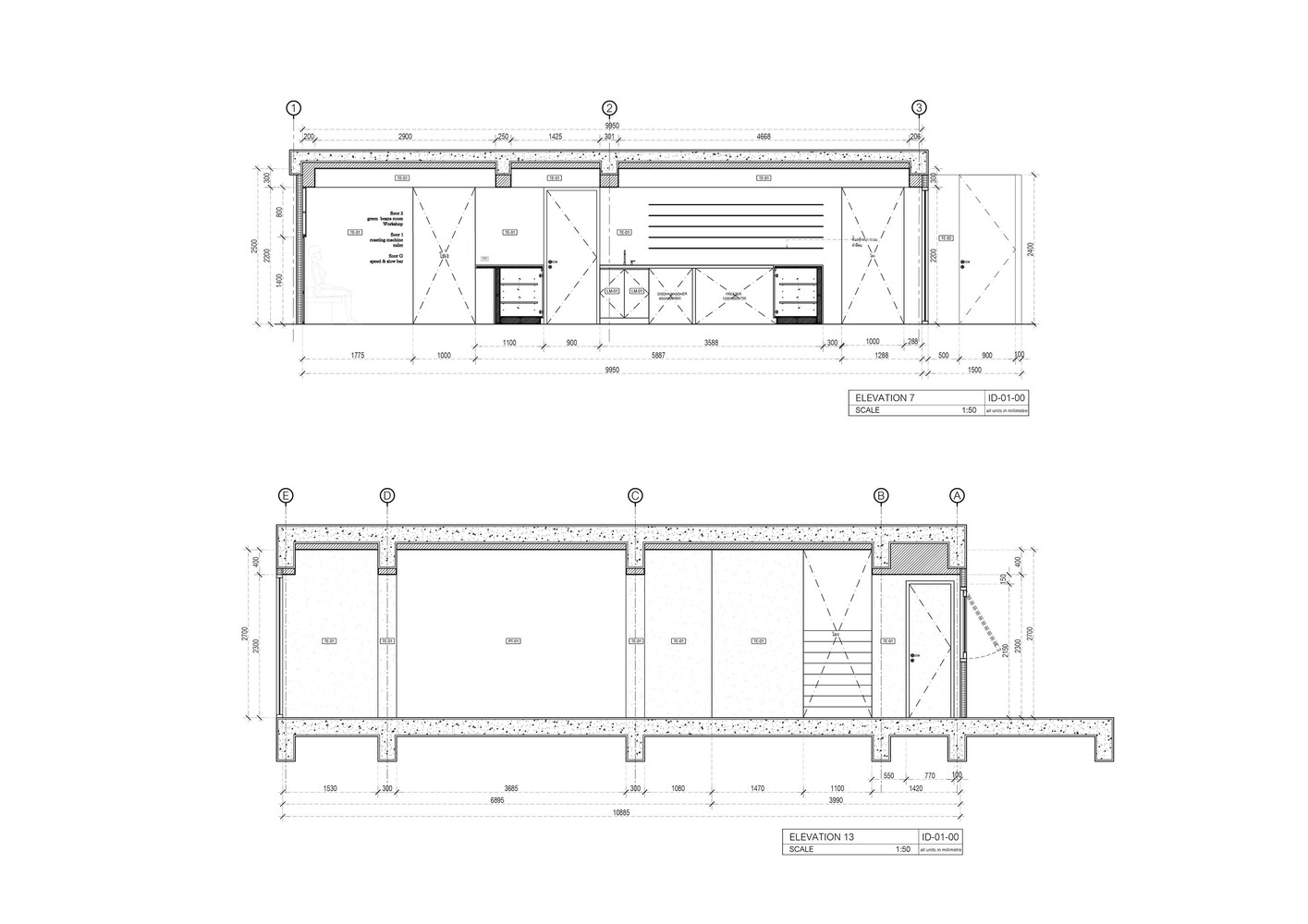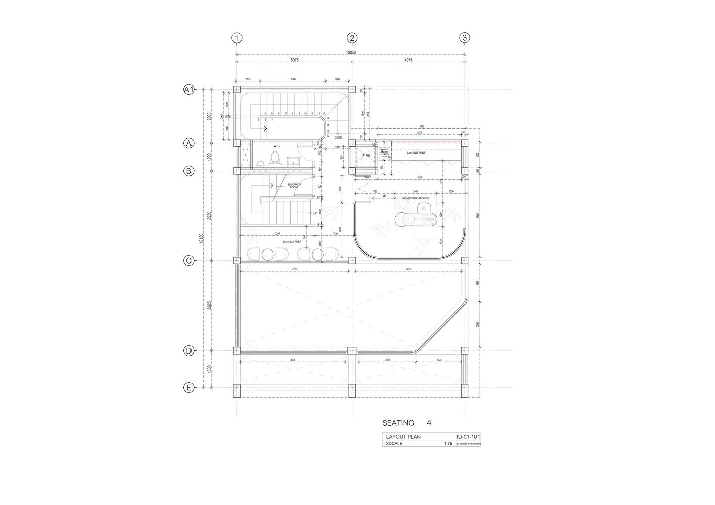 In contrast, the 1st floor and 2nd floor are covered by solid dimensional facades designed to accommodate different functions and spatialize the space. The 1st floor is coffee roasting room, designer created half facade that able to display the roaster machine while naturally helps control the light and create an appropriate atmosphere for the micro-roastery over time. Whereas the 2nd floor is a coffee storage and a workshop space, the designer created a gap between the main construction and the facade letting in the light to cast pattern and shadows on the wall, forming a private inspirational learning space for workshop participants.