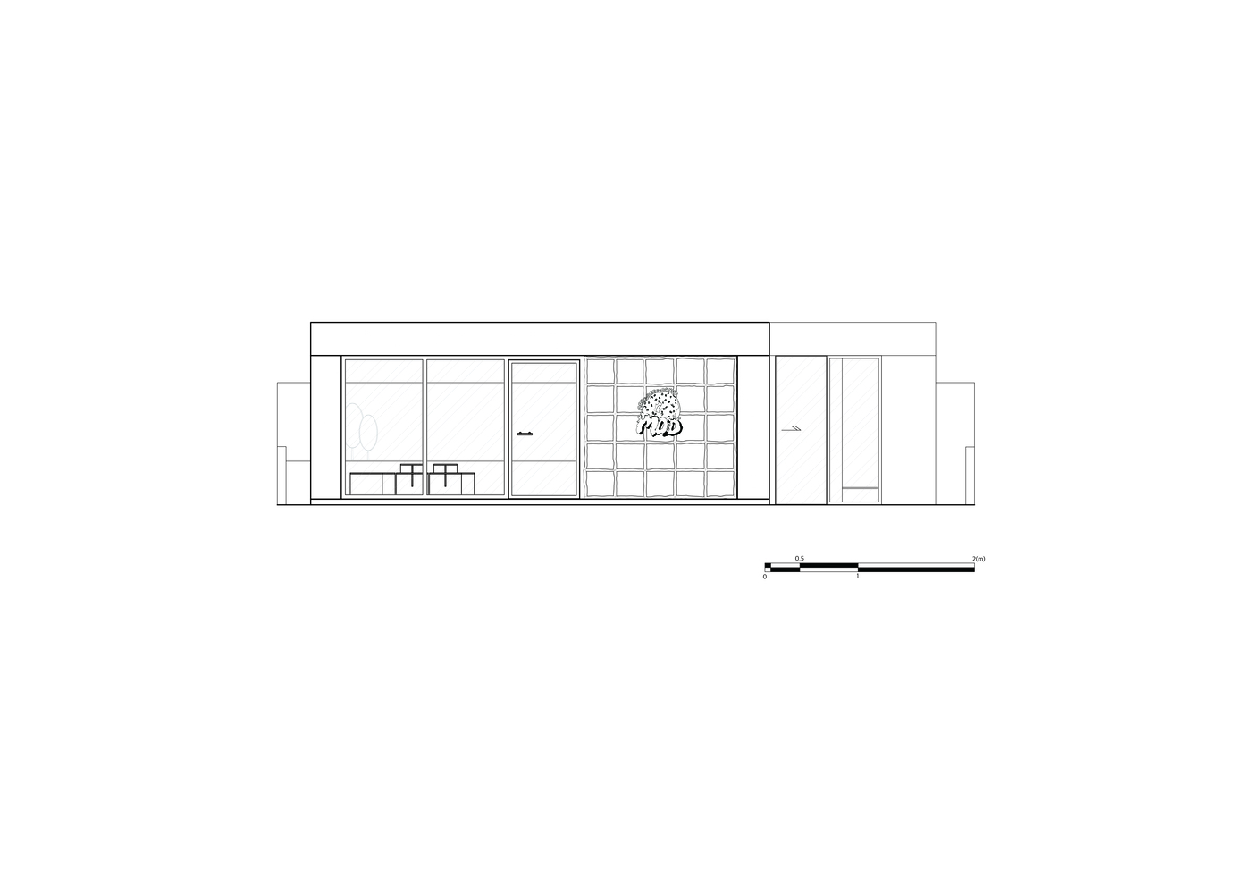 Theatrical Point of View - As a customer sitting in the hall, the baking process and activity feel like a work of art, or a theoretical performance. The space was designed so that the performance of ‘baking’ can be seen through the glass blocks. This element is placed at the centre of the furniture that runs from the entrance to the terrace so that all customers sitting in the hall can enjoy the action in the kitchen.