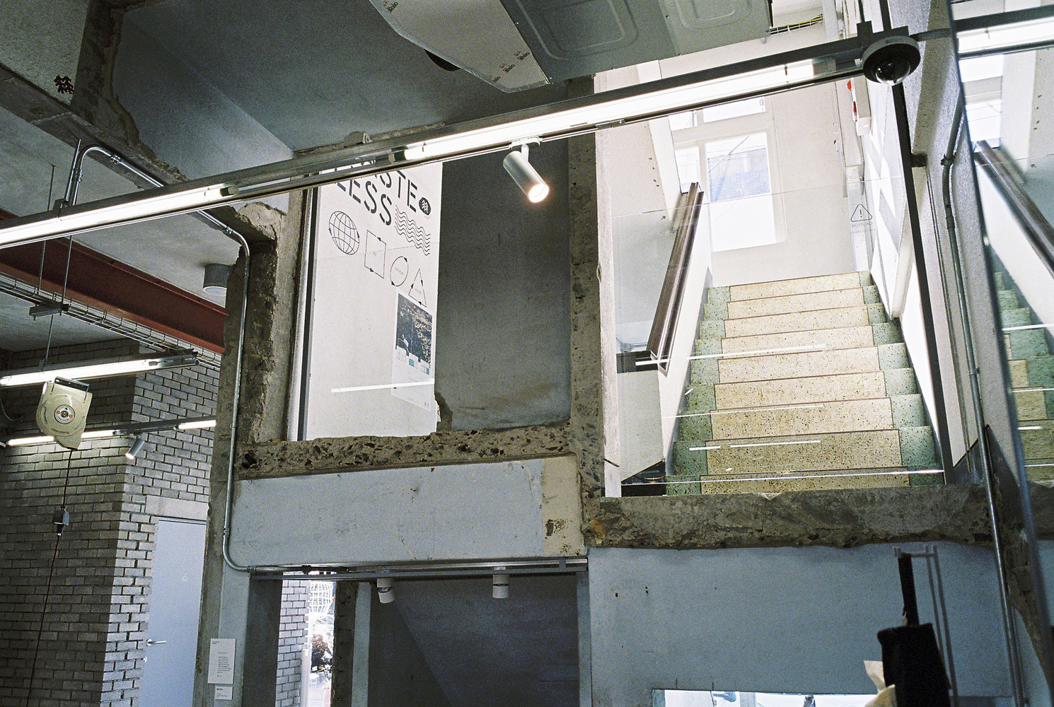 With the goal of transforming the building into an attractive mixed-use facility in the future, we first removed the stereotypical signage so that the boundaries of each section could not be perceived from the outside. This time we renovated one section of this building, but since the owner owned three sections there, we decided to reorganize them and connect them to the upper part of the building, as well as buildings on the side and back of it to accommodate future changes and developments.