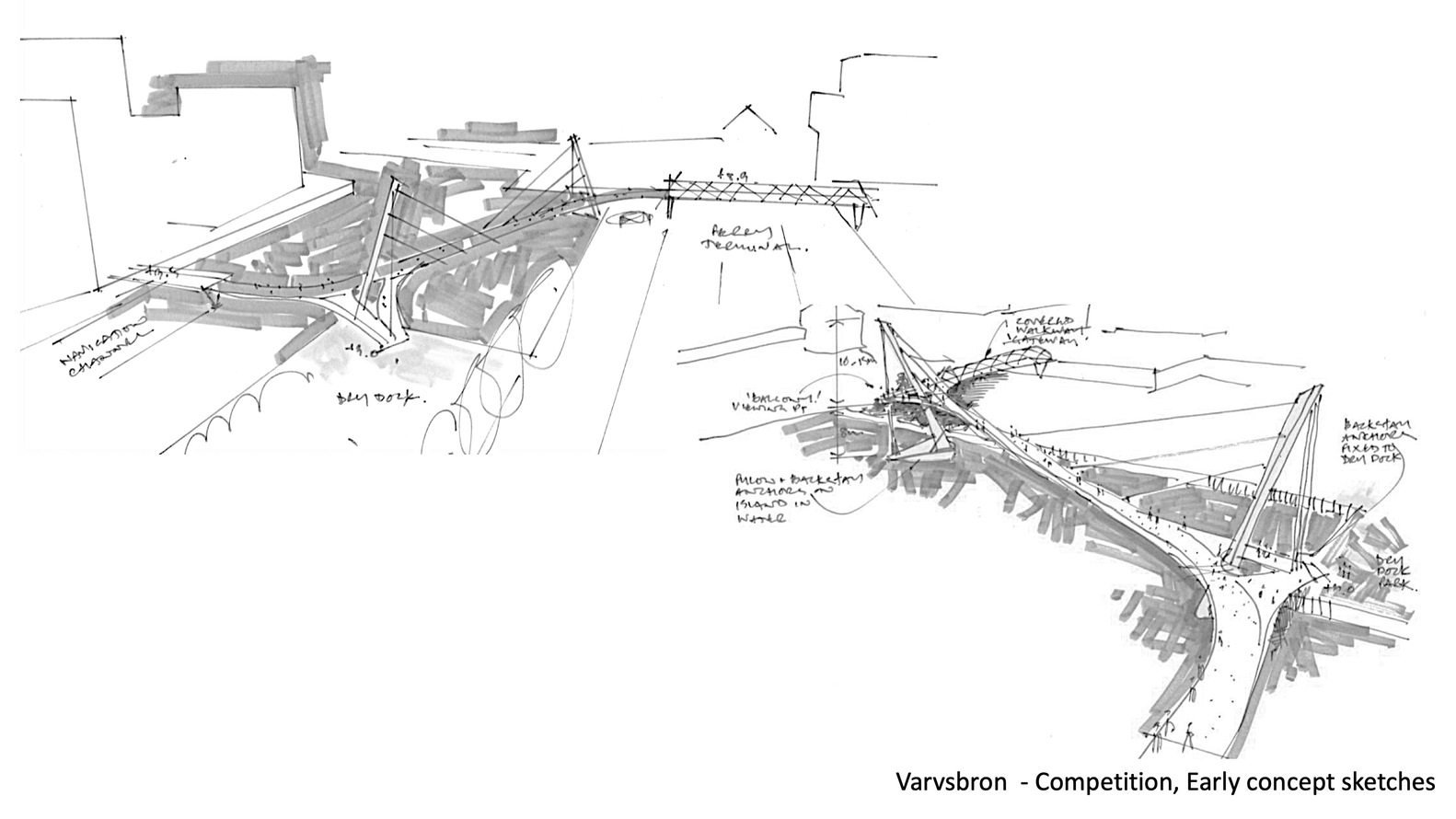 The City of Helsingborg in Sweden is in the process of realising ambitious plans to develop vibrant new neighbourhoods and revitalise its urban fabric. These plans required a new bridge to unlock the potential of the old dockyards and facilitate the future success of a vibrant new ‘urban archipelago’ to be called Oceanhamnen. In 2014, following a pre-qualification process, three international consultant teams were invited to submit design bids in parallel.