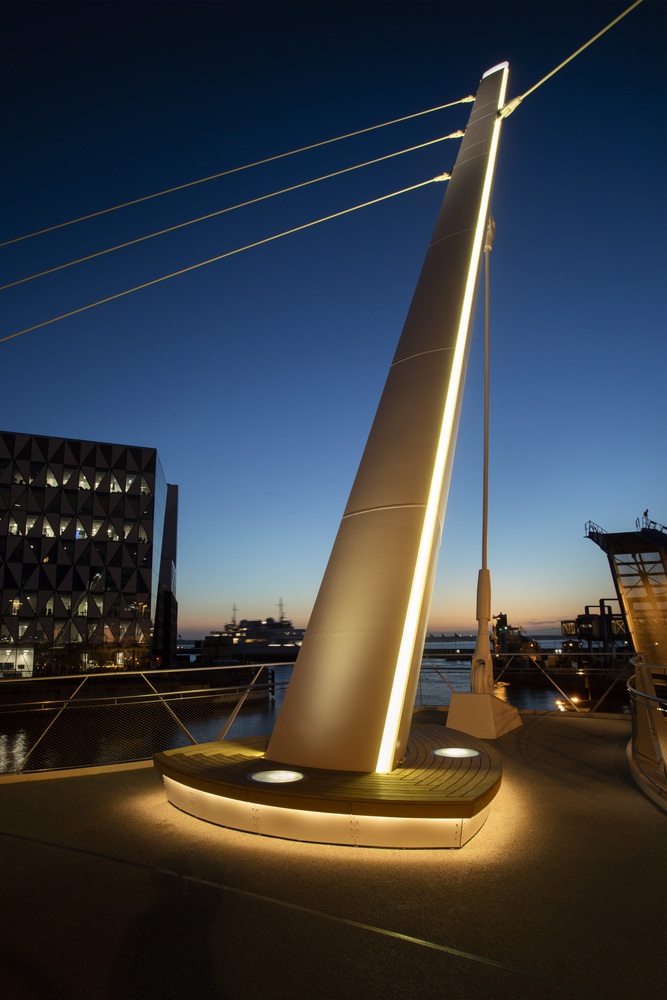 Situated in an area of a great industrial heritage site, the bridge has become a focus for the regeneration of Oceanpiren and Helsingborg in general. Users have responded enthusiastically to the new bridge which epitomises new confidence in engineering that is flowing from inclusive design and fast-developing technologies.