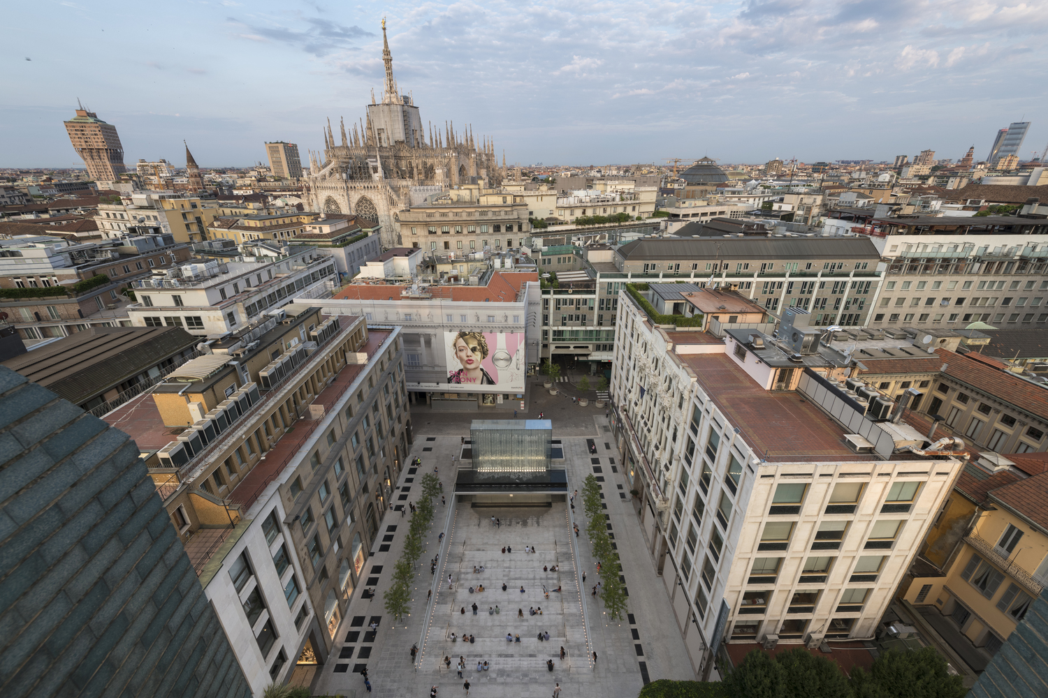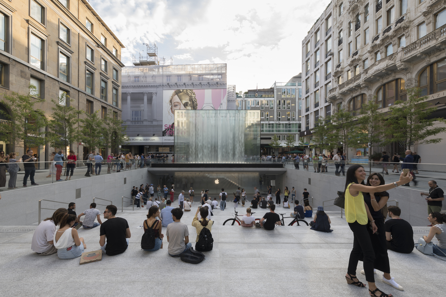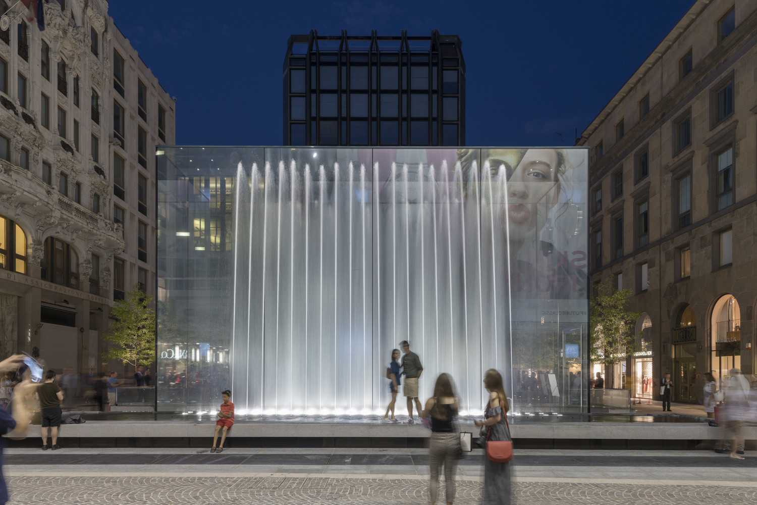 Apple Piazza Liberty is an ensemble of two fundamental elements, a stepped plaza and a fountain. Located just off the Corso Vittorio Emanuele – one of the most popular pedestrian streets in Milan – visitors are drawn towards the piazza by the sight of the dramatic new fountain.