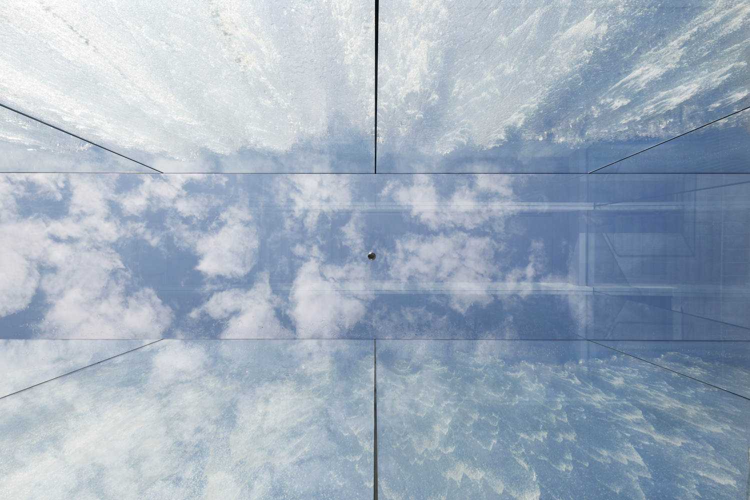 A celebration of the joys of city life and embodying its dynamic nature, the signature water feature is an interactive, multisensory experience. Visitors enter the fountain through a glass-covered entrance enveloped by the sights and sounds of vertical jets of water that splash against the 26-foot high glass walls. An immersive recreation of the childhood game of running through fountains, the experience changes throughout the day as sunlight filters through the water, while at night the glass ceiling creates a kaleidoscopic effect, with the water falling down the walls, and its reflections travelling infinitely up the sky.