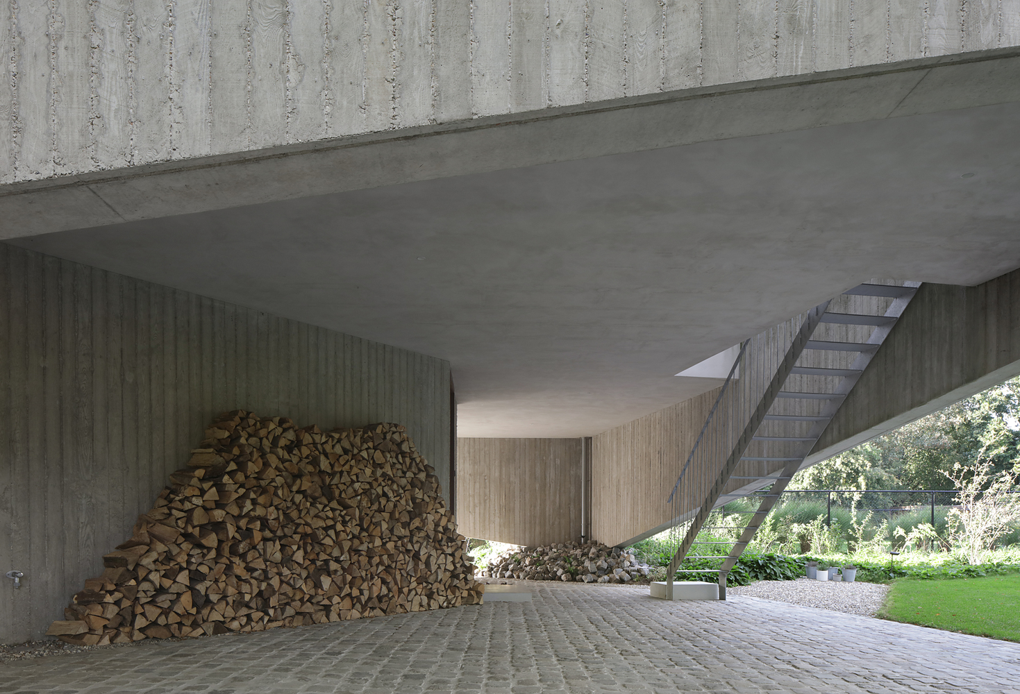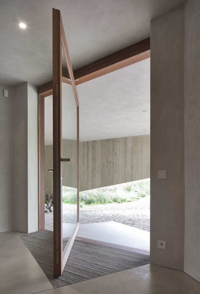 The concrete from which the house is built also forms the supporting structure. This made it possible for the opening movement of the facades to be continued in the interior.