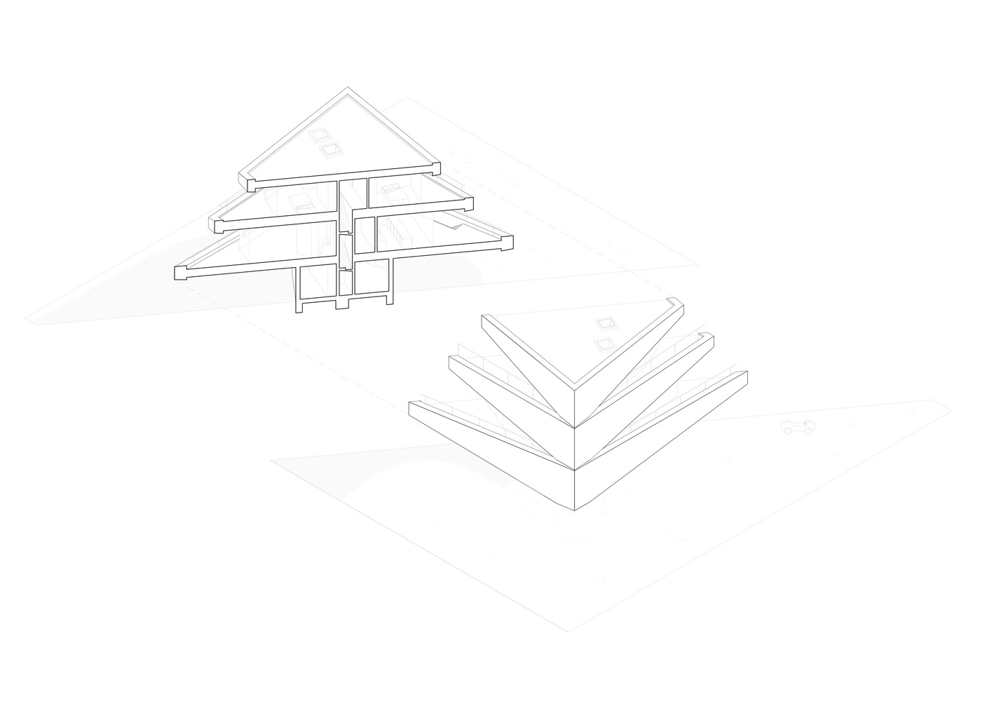 The concept for this house evolved during the creative process into a story that in a single gesture meets all parameters of the residents and the environment, so that it fits seamlessly into its context.