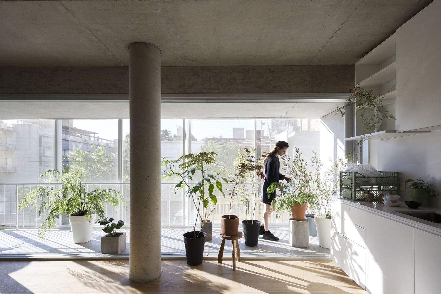 Each living room takes the whole unit width and links with carpentry that enables the balcony fusion, creating a new transitional space between the open and the covered, between the outside and the inside.