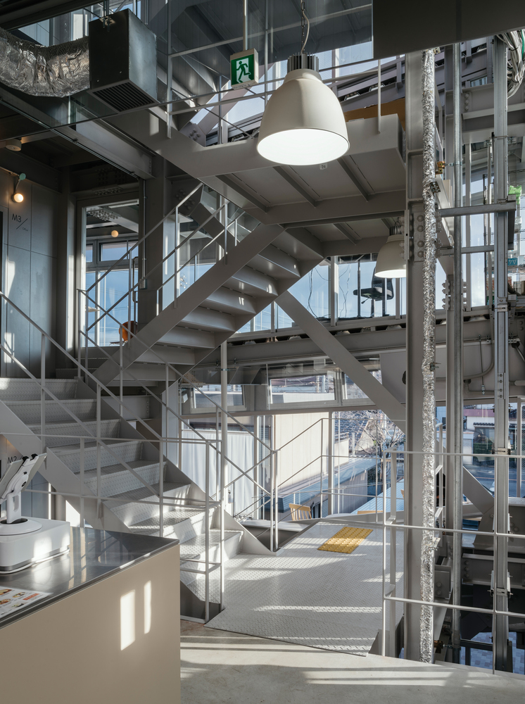 However, a certain order is required to establish the flow. The floor height standards of the core and the slopes were 4.5 m and 3.0 m, and the ratio of the sloping was set to 1/12. The slope is supported by a cantilever from the core, and the width and gradient of the slope can be flexibly adjusted no matter what function comes.