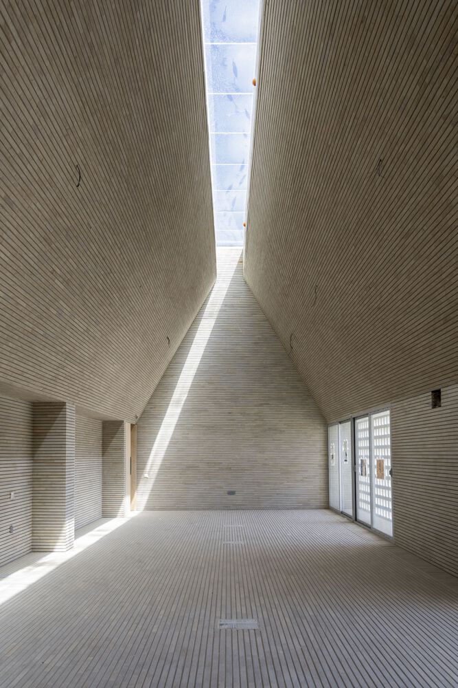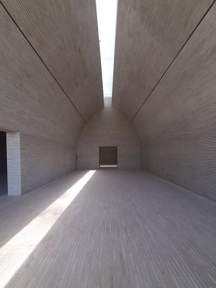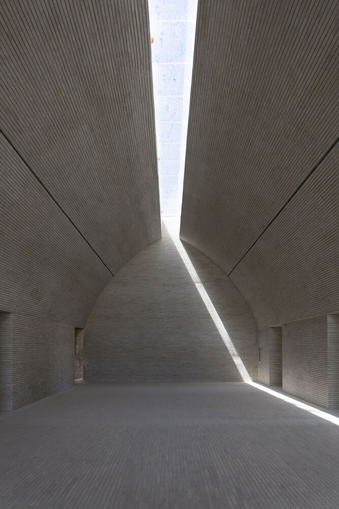 Silence and the experience of time. The interior spaces of the center completely devoid of detail or ornament, by their sheer austerity, favor a contemplative and reflexive attitude... The skylights of the cultural center create lines of light that move following the path of the sun through the sky making visible the passage of time.