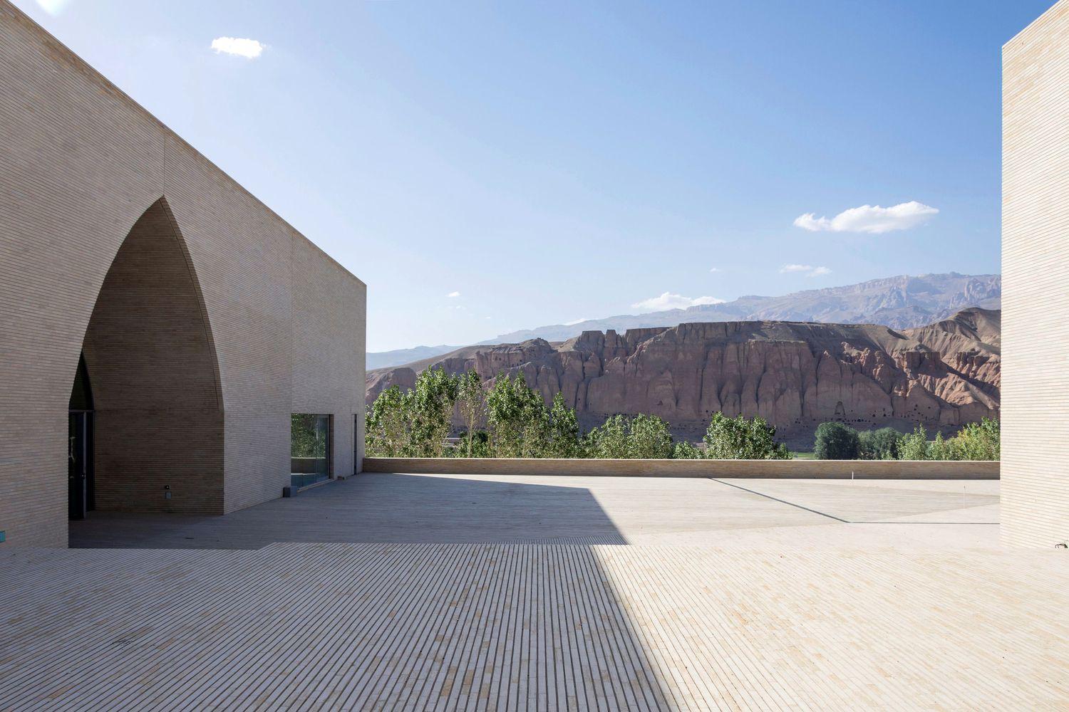 The vaulted spaces of the exhibition area are oriented in line with the axis of the Western Buddha Niche and frame the views towards it giving a dramatic historic backdrop to the contemporary cultural manifestations. This makes visible the contrast and continuity between the afghan past and present.