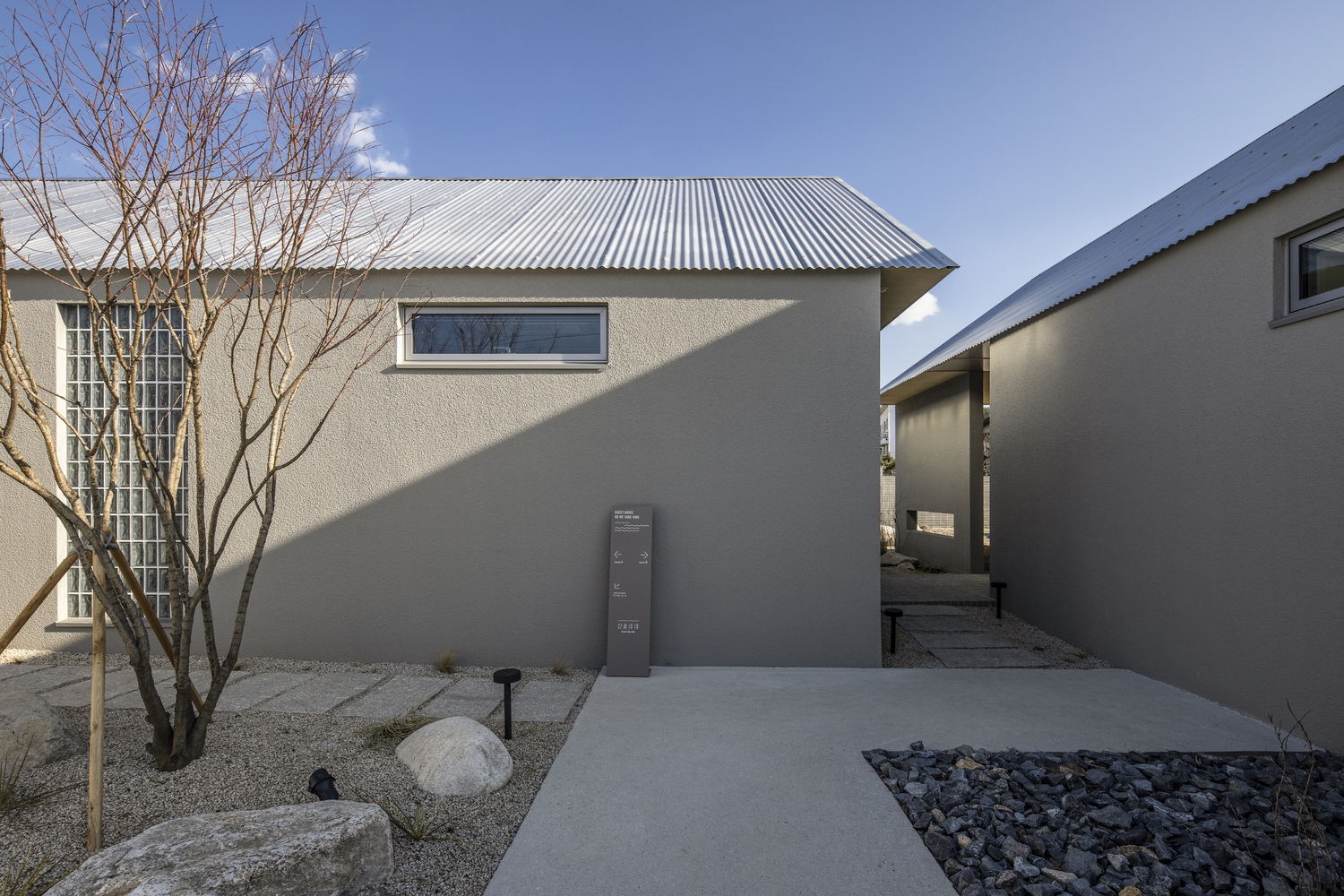 Homiyangyang means ‘a space filled with the beauty of taste’, and it is a space filled with tastes that guests want to share. Based on this thought, HO ME YANG YANG naturally prioritized the experience at the various points of contact between the client's taste and the guest rather than securing the maximum architectural area and the resulting efficiency and productivity. Considering that the ‘Hajodae Beach’ area is designated as a tourism and recreation district unit planning zone, allowing for a high floor area ratio, the plan consisting of three single-story buildings was a bold choice.