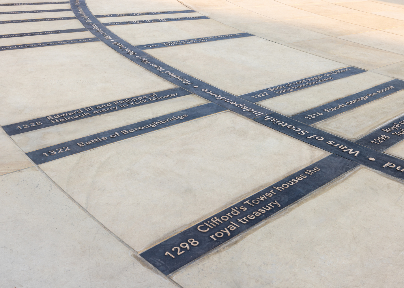 The stone tower was built soon afterward and was used as a treasury and royal exchequer. In the 17th century, a fire destroyed the interior of the tower, and the building was reduced to a shell. The mound at Clifford’s Tower was later cut back and a large retaining wall was built around it. In 1935, the lower slopes of the mound were reconstructed.