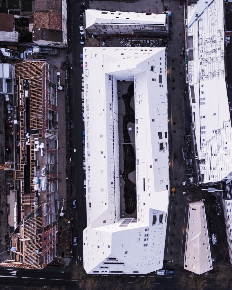 The resulting volumes are cut at the optimum angle to allow maximum daylight for all apartments, even on the lower floors. This creates a unique and varied lightscape with volumes allowing a wide selection of apartment types. These range from student housing, social apartments, penthouses, duplexes, and triplexes.