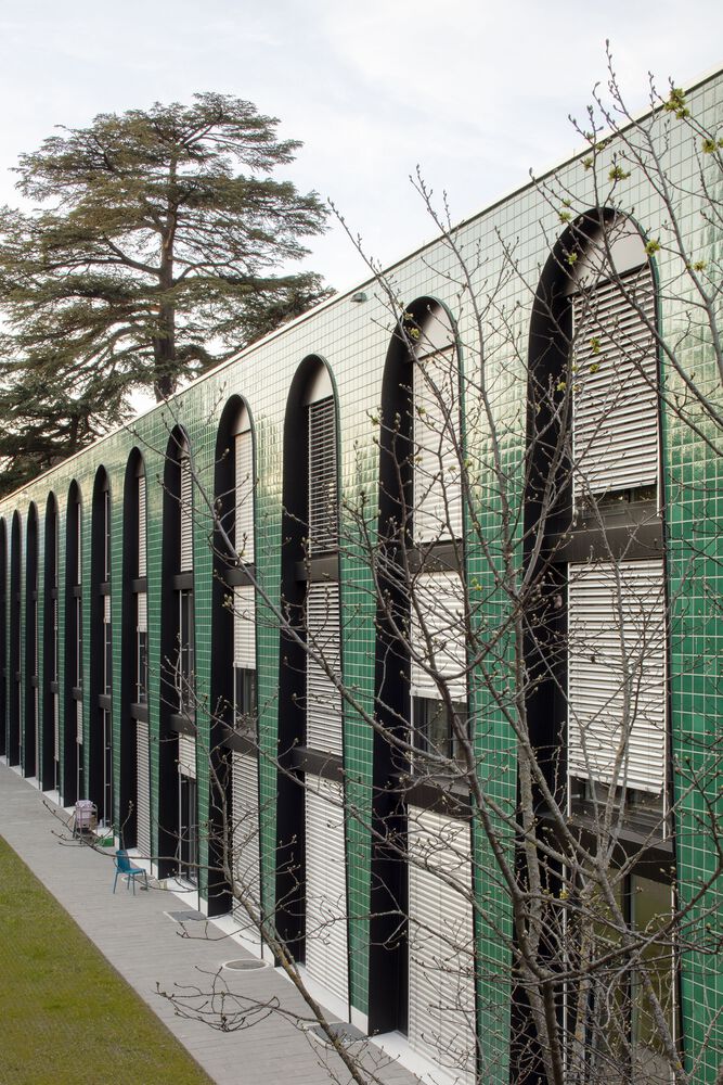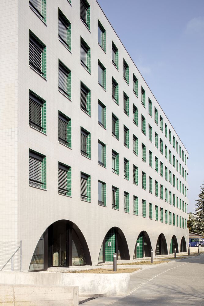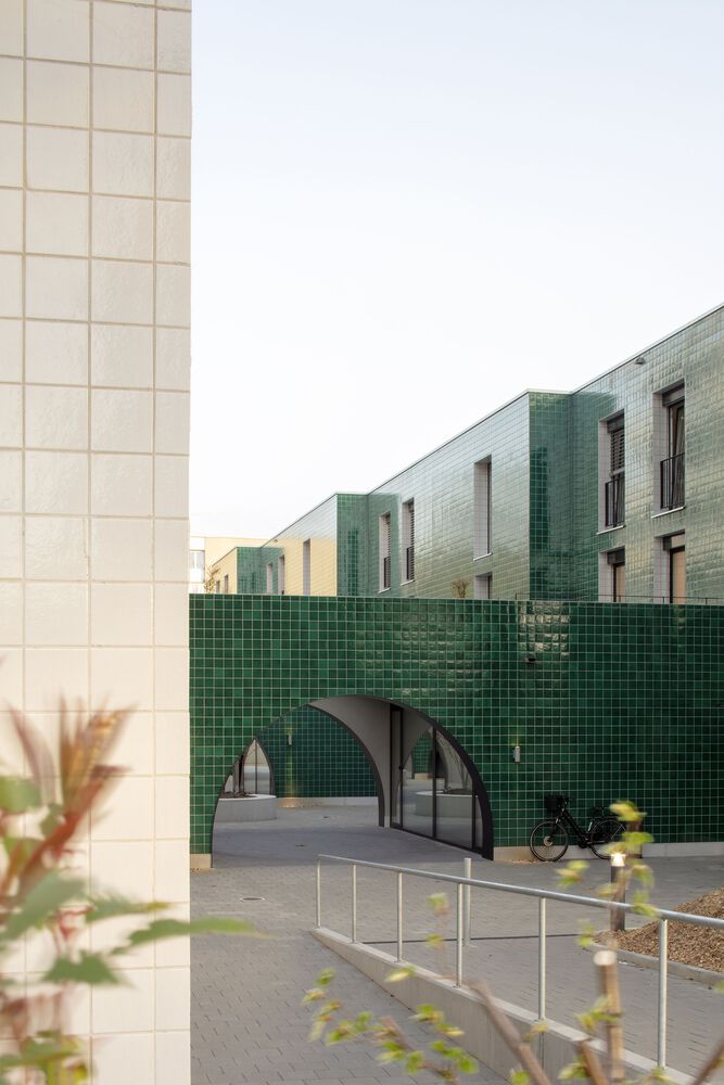 Pasodoble offers a home to people with mental disabilities and to students, as well as collective and social housing. Commercial spaces and a center for physical training and rehabilitation are located on the ground floor. A continuous arched portico binds them together and forms the structural base of the building.