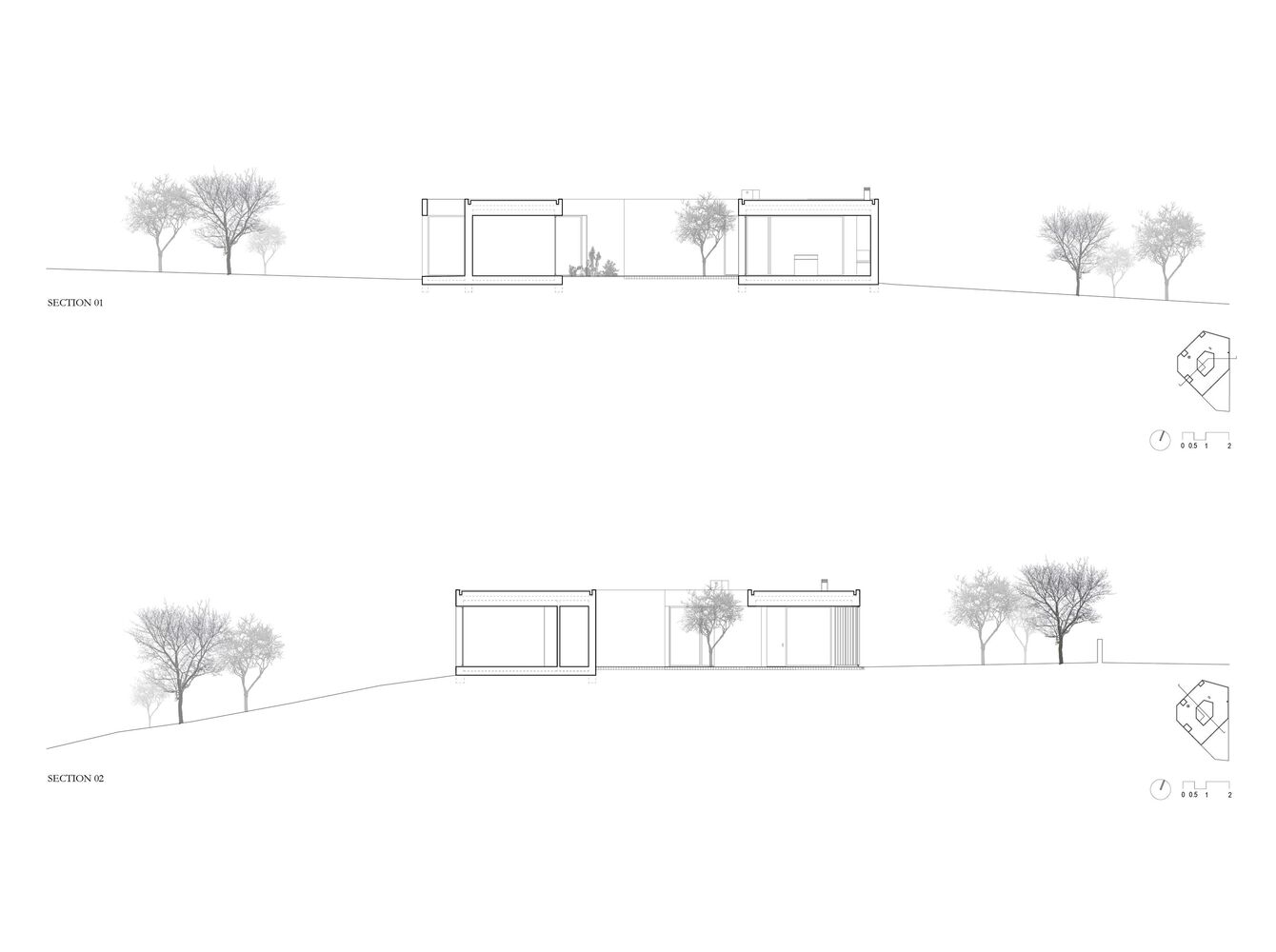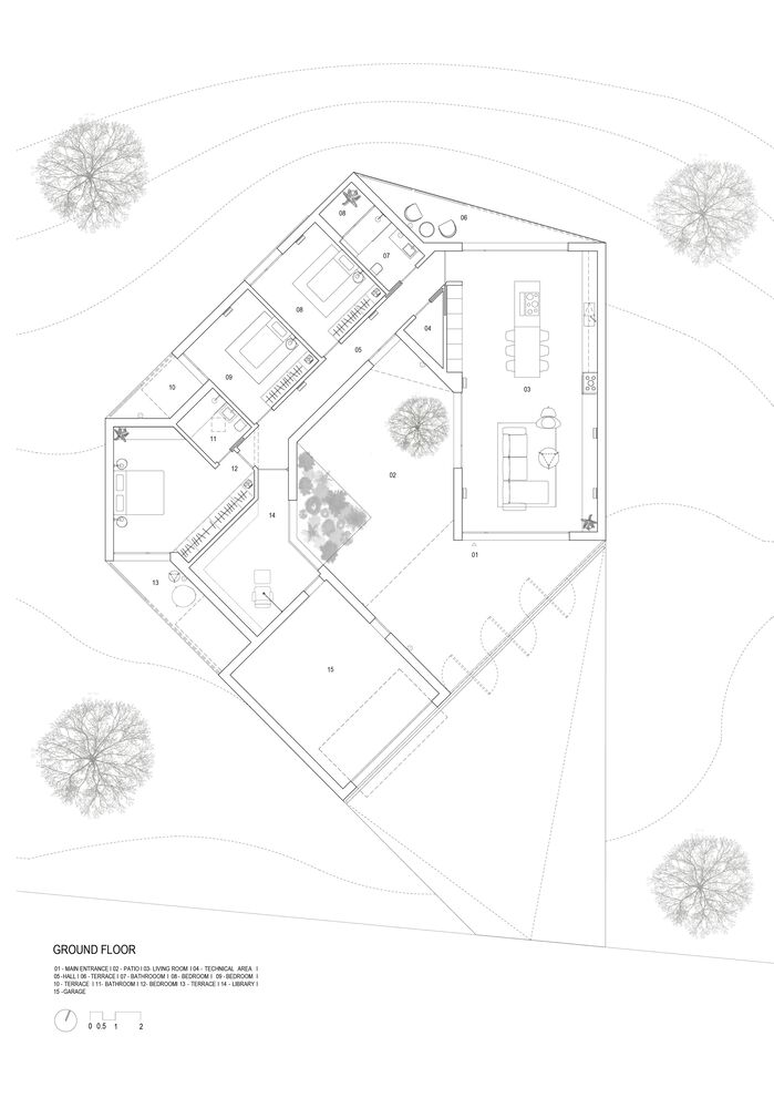 CONCEPT. The house is conceived in the central part of the land, a stored building halfway up the slope. The concept for CF house development was defined through three conditions:
