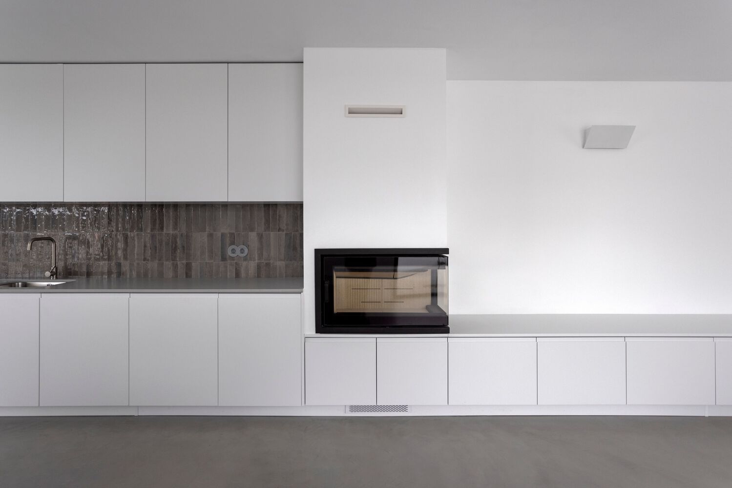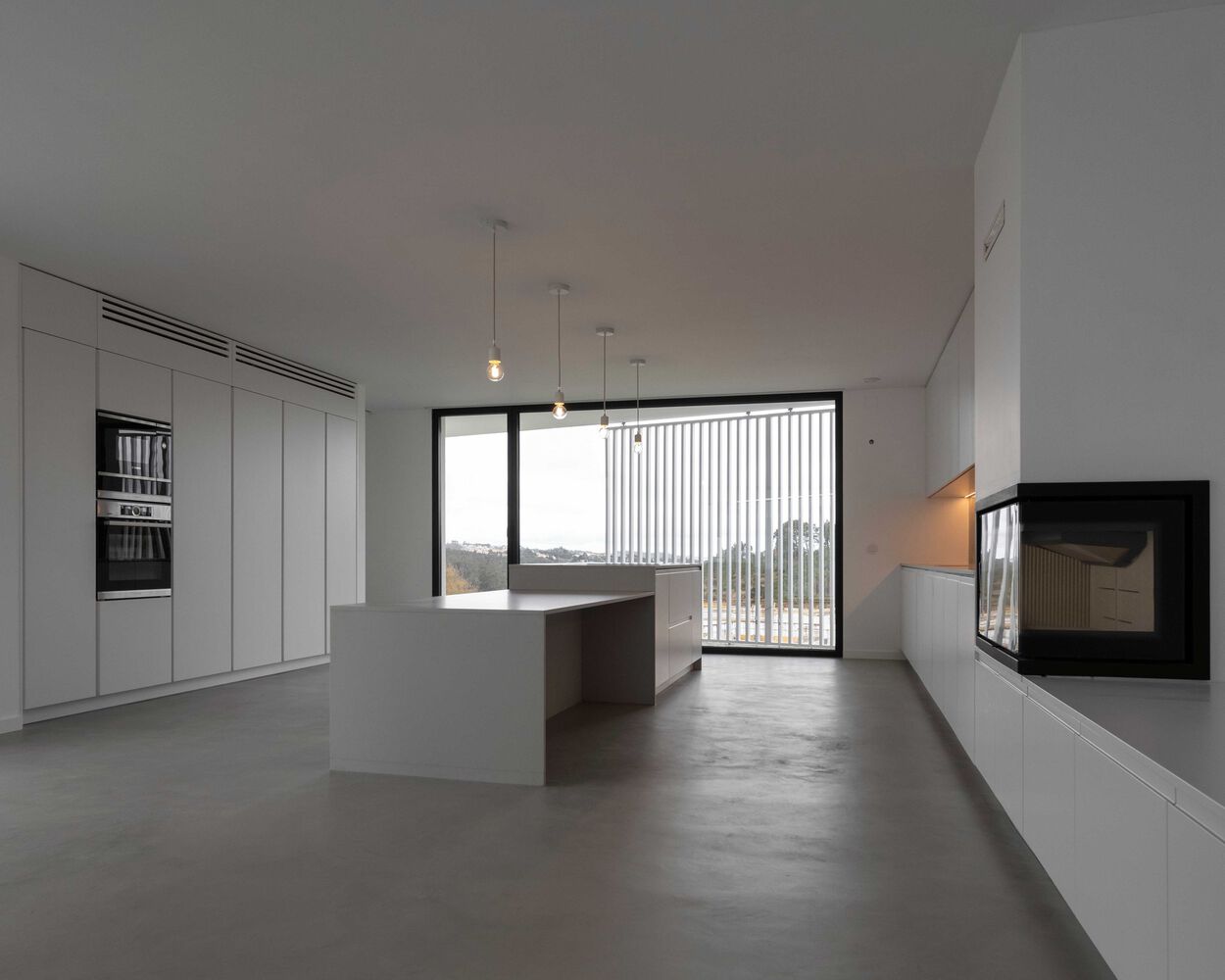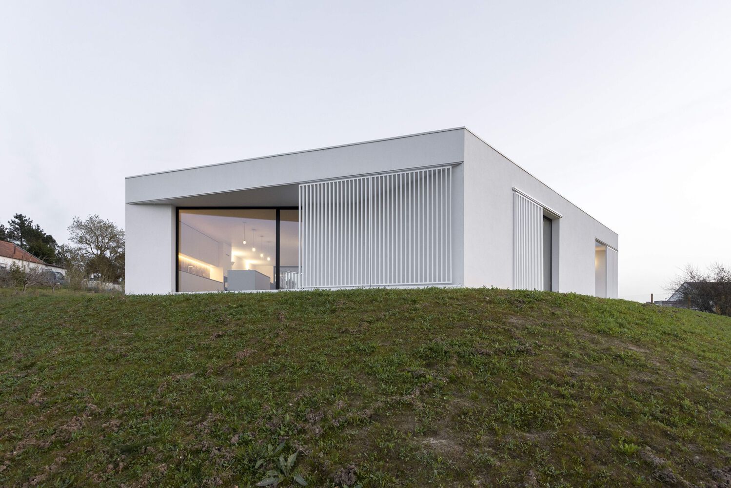 CONSTRUCTION. The house is built according to simple construction systems, a reinforced concrete structure, with white-painted "capoto" walls, a single light-grey micro cement floor on the inside, and granite slabs on the outside. The project also is provided with sliding and pivoting shutters, which give the possibility of intimacy and security to the outdoor terraces.