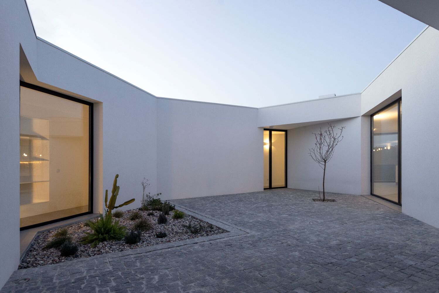 - Patio - Arranging the volumes on a central patio enjoying the sunlight from the south-west It works as the “heart” of the house, taking advantage of a more intimate space that is reserved for the inhabitants of the house, with a small garden of aromatics and an almond tree framed with the living room;