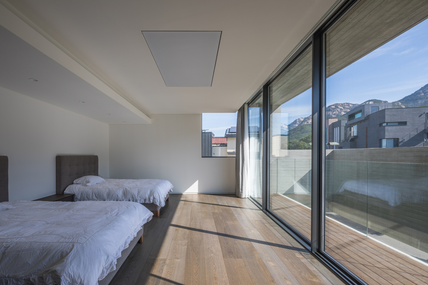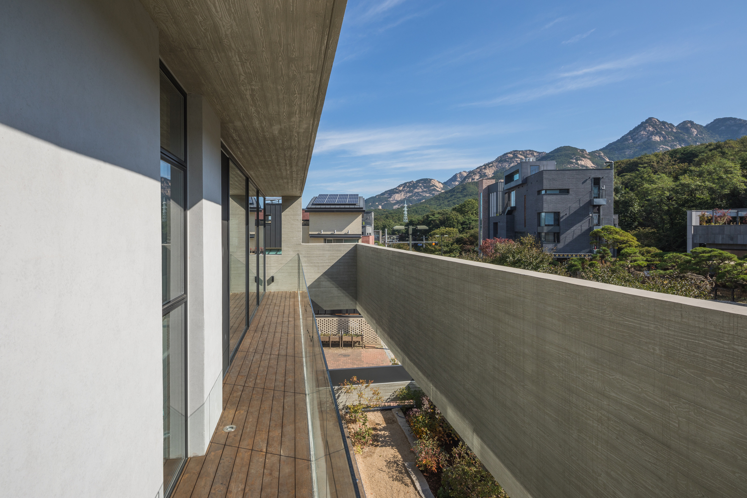 This project embarked in a detached housing area in the housing site development district, which is adjacent to Jingwan-dong Hanok village, has been started with the aspiration to achieve the dream of the client in 60s close to retirement. The client’s requirement was simple. The client requested two things: to enable the client to start a day overlooking Mt. Bukhansan when the client opens their eyes at a bedroom in the morning and to have a spacious living room.