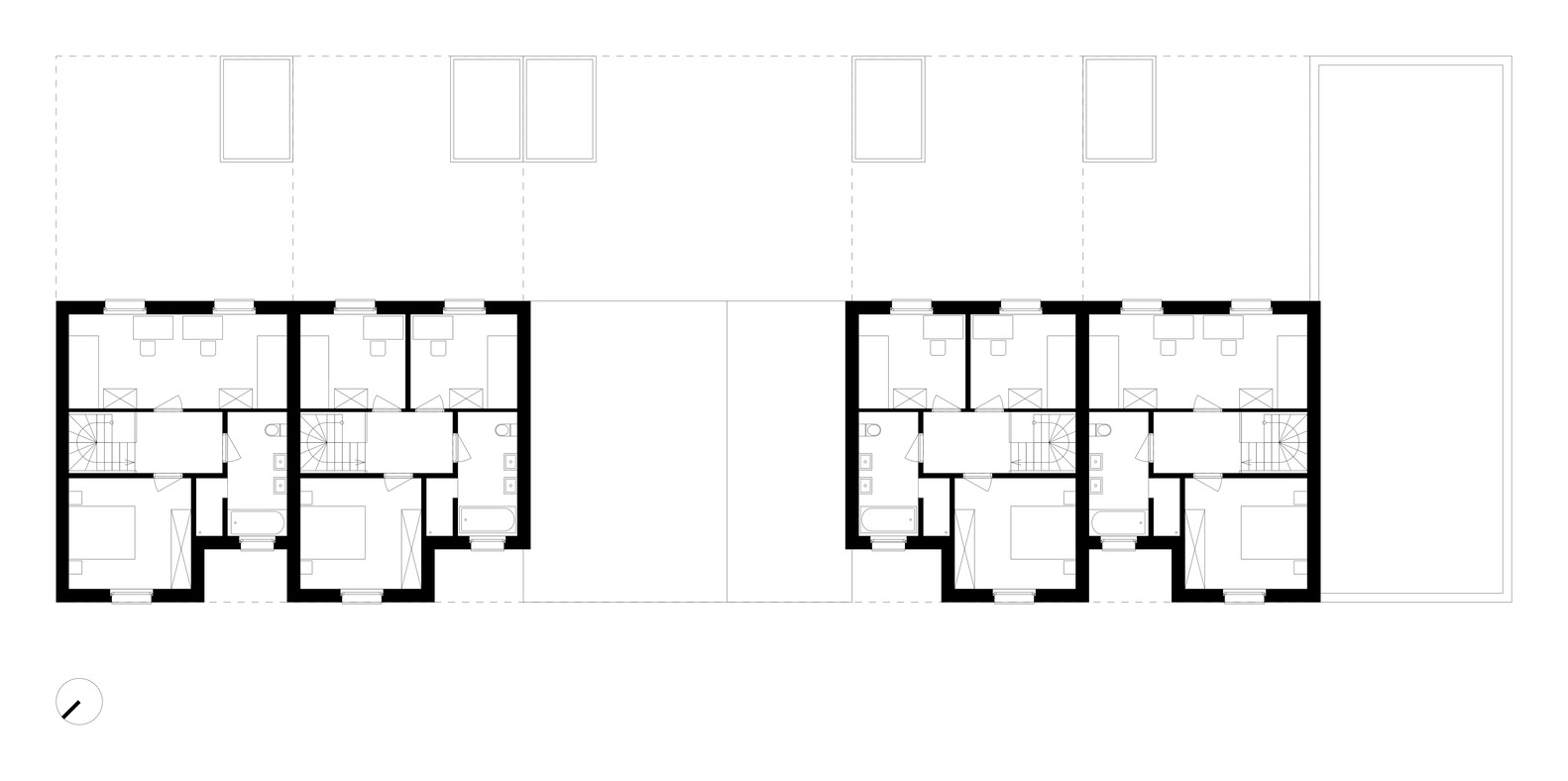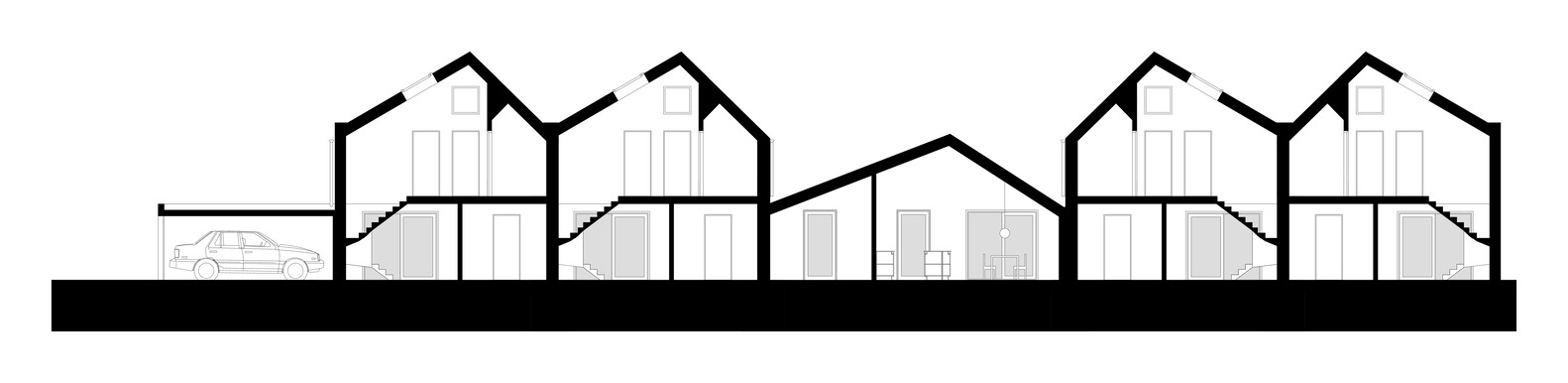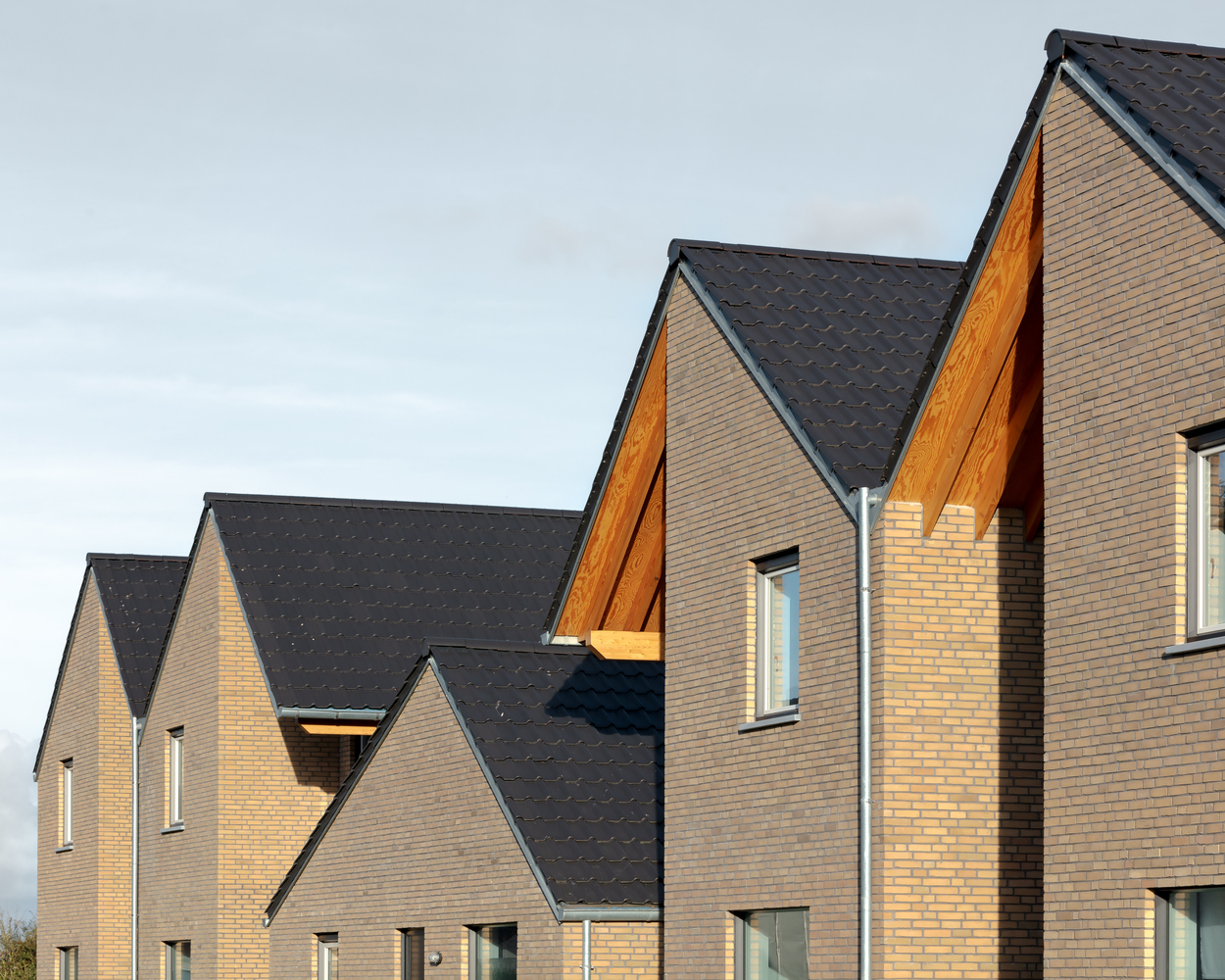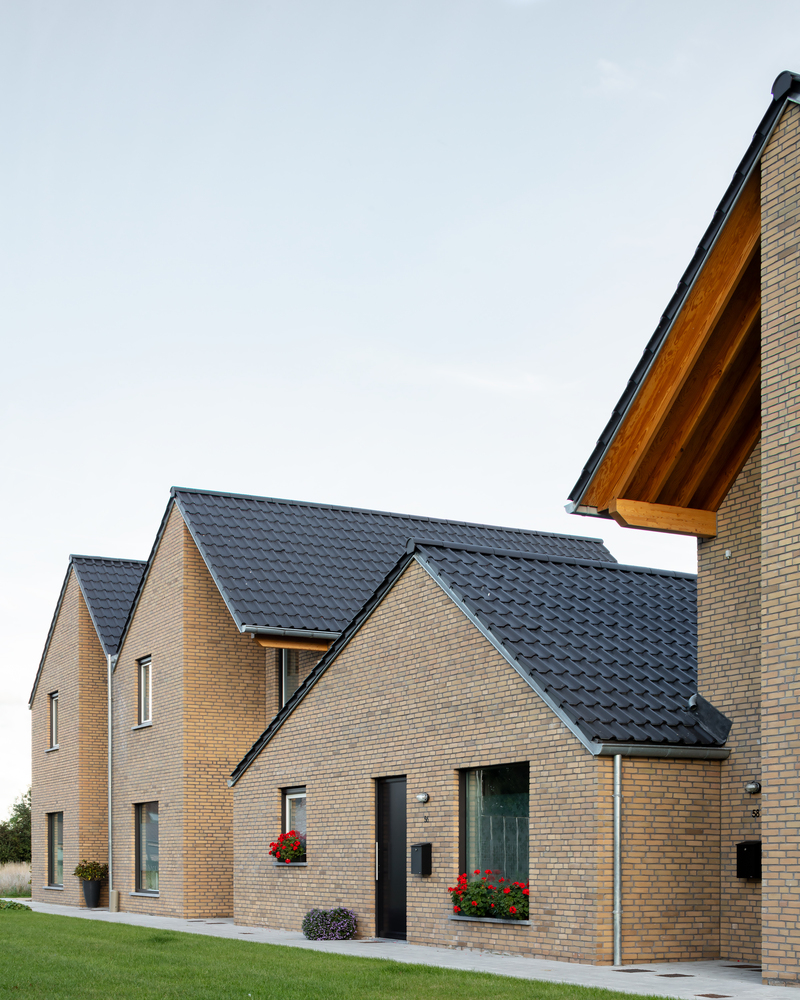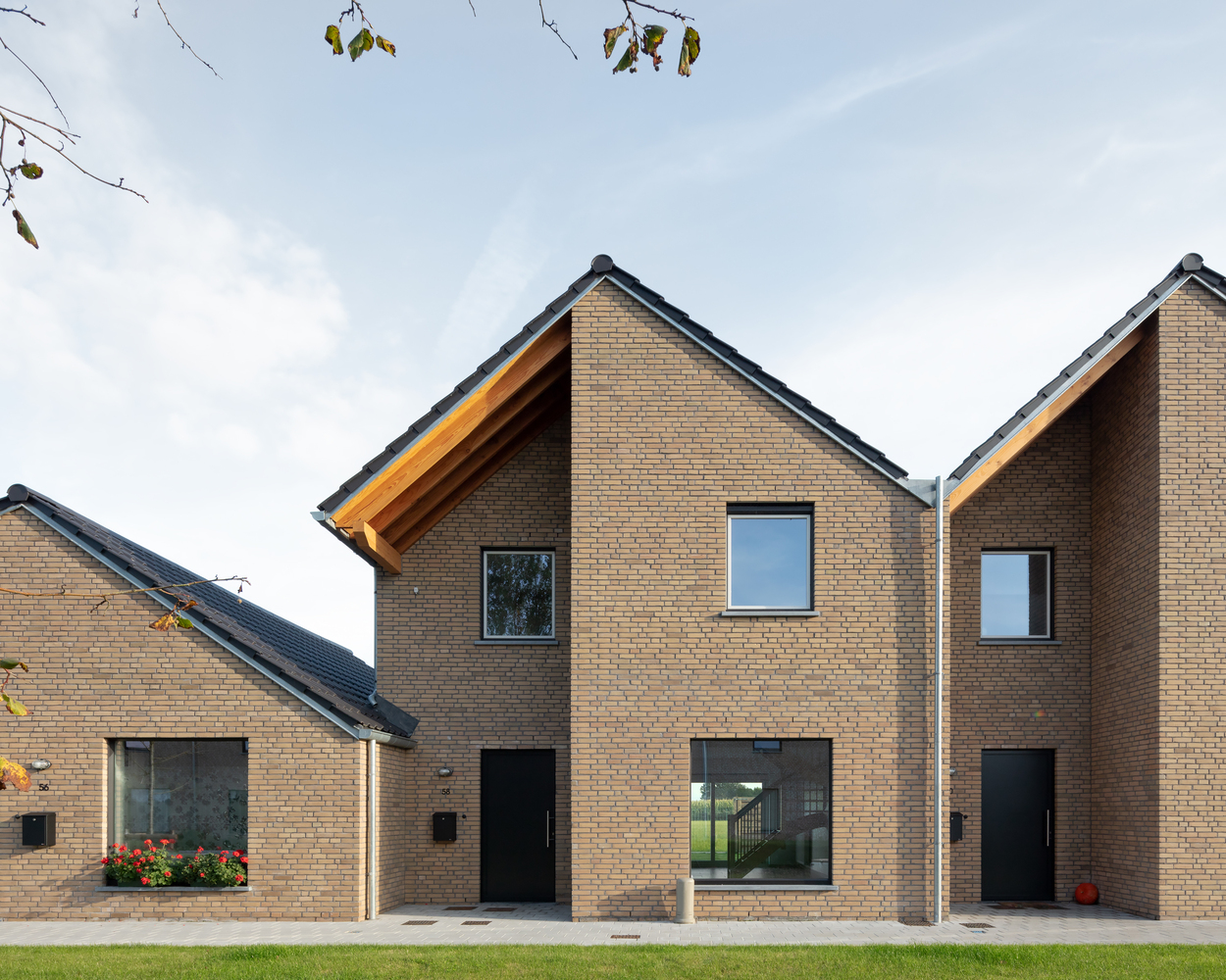 The design, which was developed within an existing master plan, generates a captivating urban quality with the design of semi-detached houses under double gable roofs, perpendicular to the façade. The uncommon detailing leads to a strong identity of the new neighborhood: