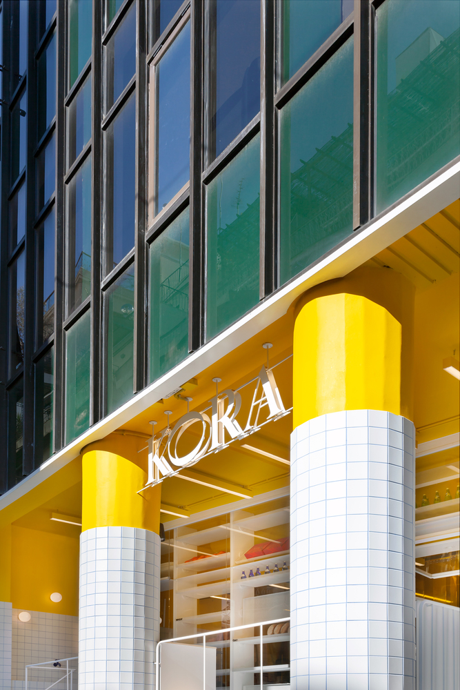 The KORA storefront and bakery thus represent a kind of stage for the production and display of baked goods. The presentation of these goods and their accompanying production processes are conceived as a transparent spectacle. The process of baking and the presentation of goods are perceived through a large wall of rotating metal shelves. Changing scenarios of open, semi-open, and closed facade elements allow not only for views of different types of products but also into the production space itself.