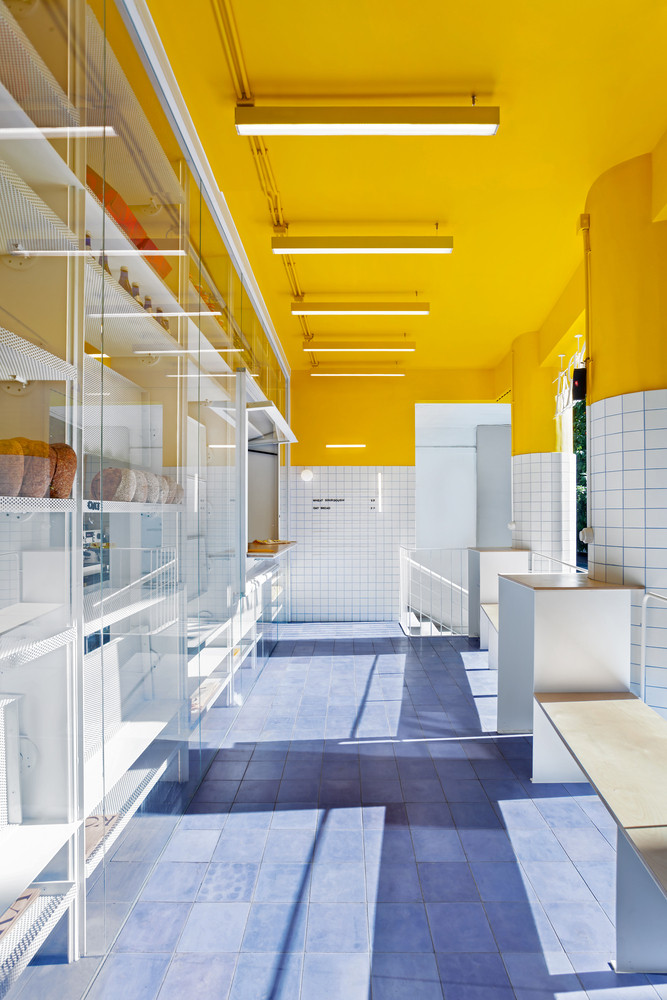 The celebration of functional elements on the inside compliments the perpetually changing spectacle in and around the façade. Producing and consuming bread (and pastries) turns into a performance, whereby the boundaries between performers and spectators are blurred.