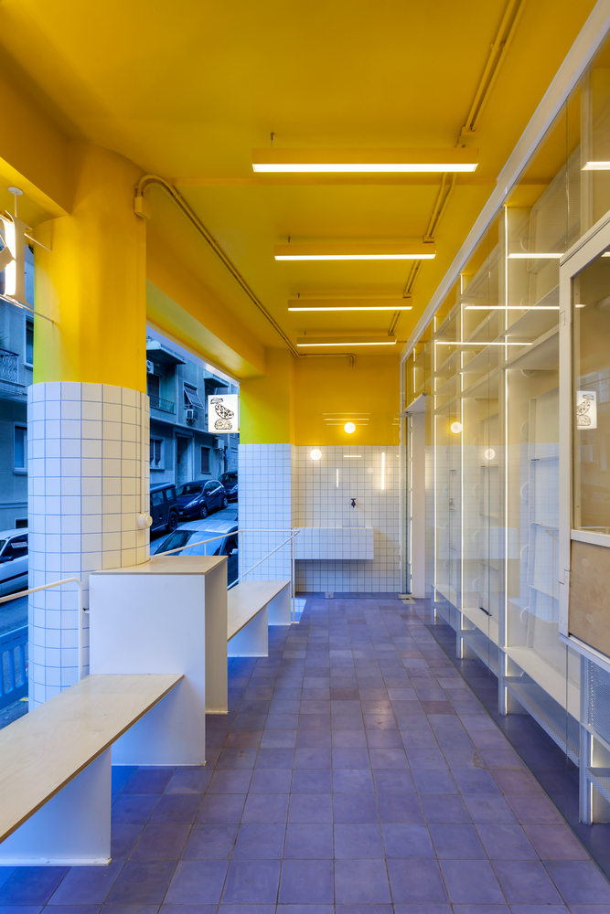 Bread has always been more than just dough. So why not celebrate its sale and production? Instead of following traditional concepts of bakery aesthetics, this project focused on an honest emphasis on its essential ingredients: space and baked goods. Situated slightly off the main commercial streets of central Athens, the initial space offered an unusually elevated and recessed terrace space.