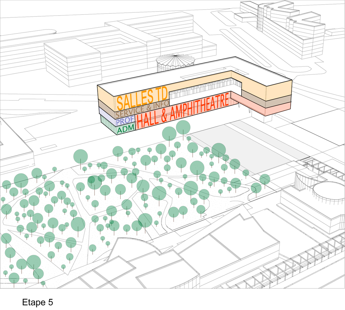 Result of the Campus Plan - an exceptional financing scheme created in 2008 for redeveloping and upgrading the built facilities of French Universities- the project consists of two buildings accommodating most of the teaching facilities of the University of Montpellier 2.