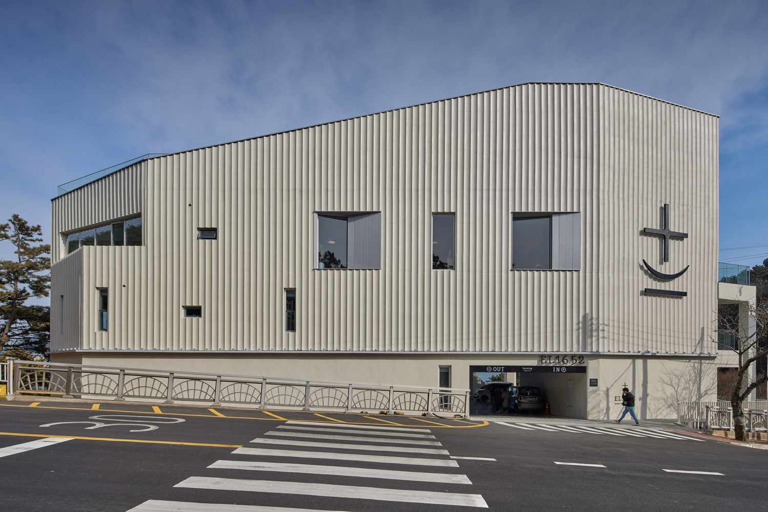 EL 16.52 is a coffee shop located off the coast of Songdo, Busan, South Korea. EL stands for altitude above sea level, and 16.52 signifies the altitude level of the underground floor where the main building was built. The meaning lies in the context of the National Geopark to which this site belongs is architecturally implied, and the temporal nature of this stratum is intended to be contained in the meaning of altitude above sea level. The construction here was to interpret the difference in level between geopark, sea, and land in the sense of architectural archetype and ultimately maximize it commercially.