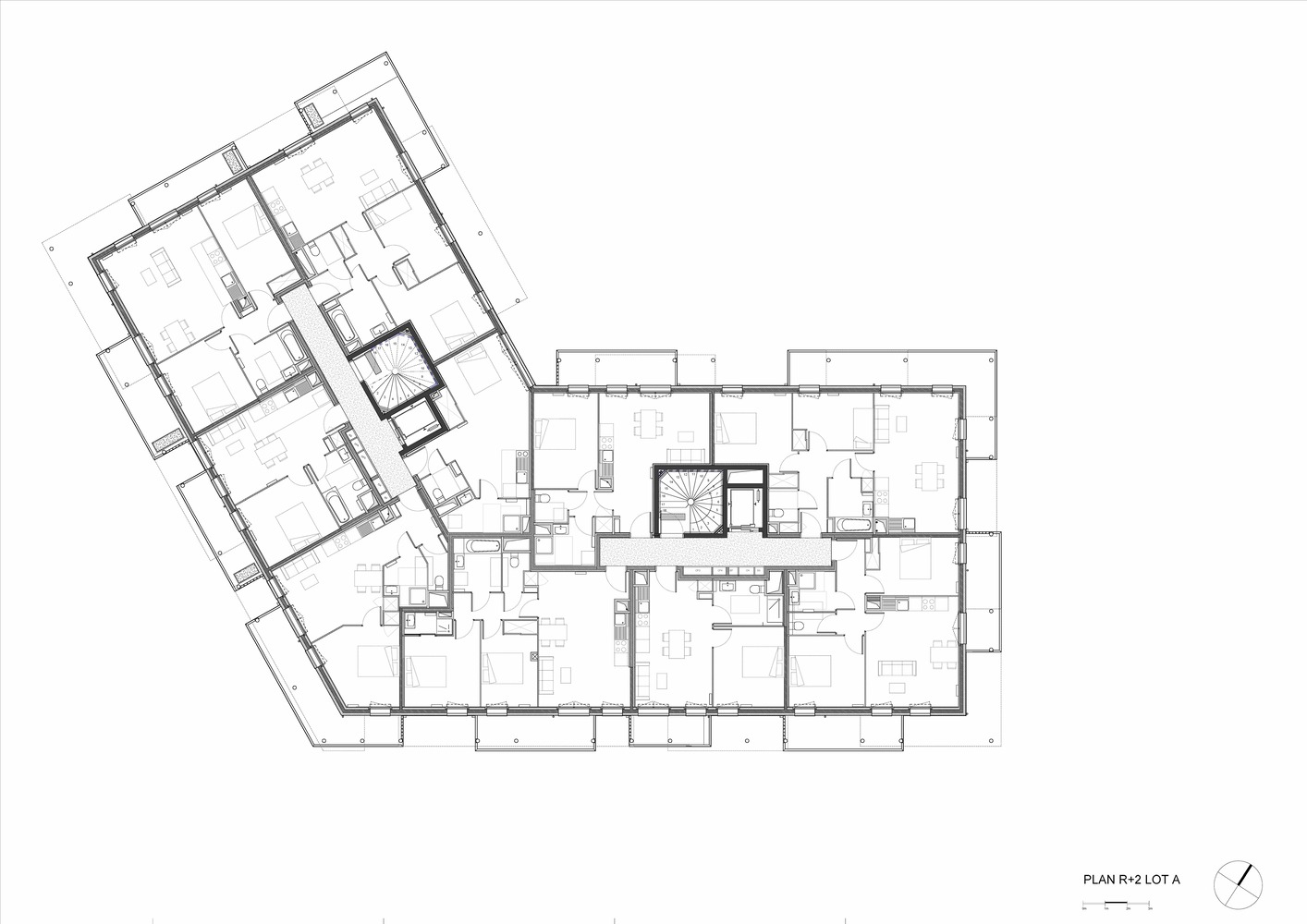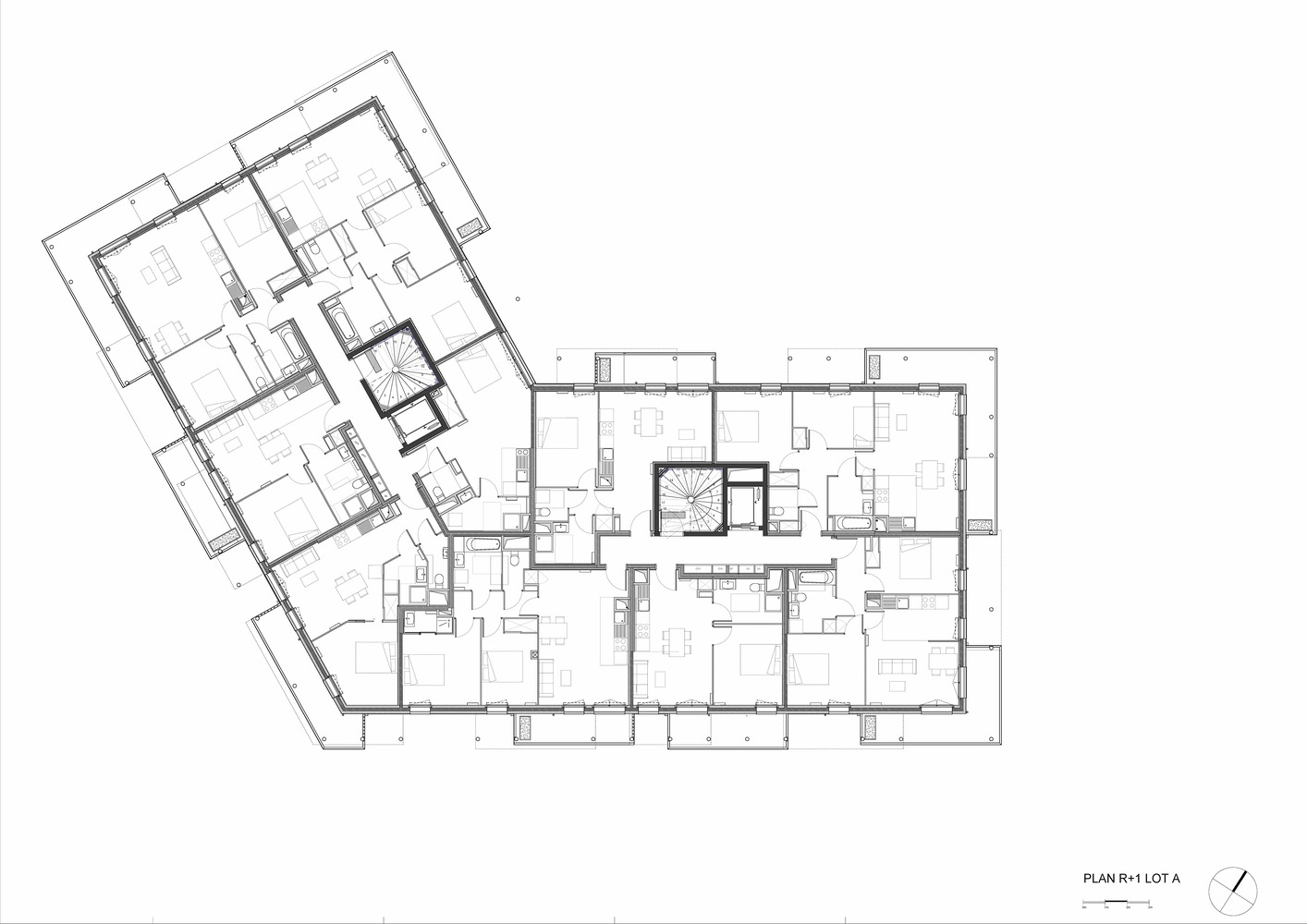 The project includes two buildings with low-carbon, bioclimatic apartments, with generous outdoor spaces (balconies, terraces, and private gardens) for residents' comfort. A wooden wall is left exposed in each apartment, adding a warm touch. The top floors offer wide views of the 2,200m² landscaped park in the heart of the site. Commercial premises on the first floor bring the new district to life.