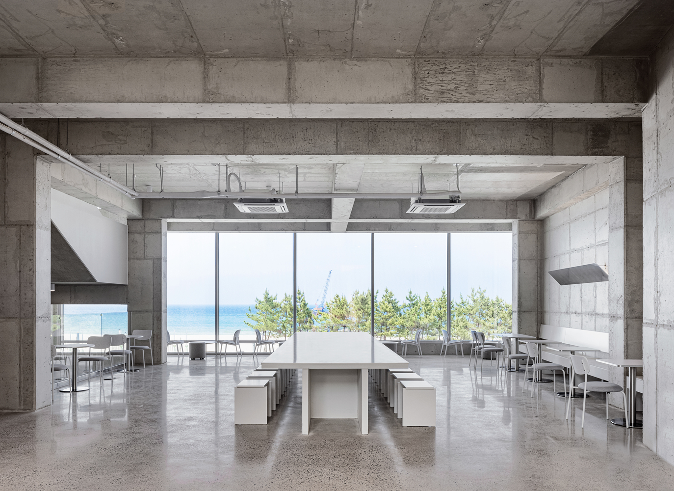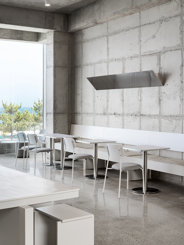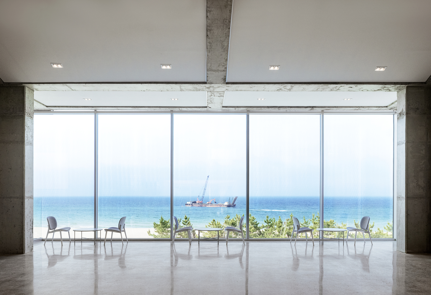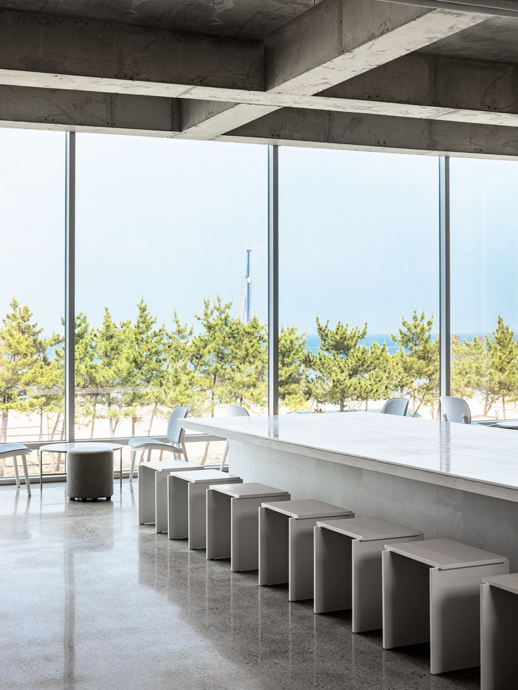 What we believed at the very first stage to be most important was the view given by the characteristics of the site. We thought of how the word chagyeong, which is commonly used in Korean traditional architecture, can be newly reflected in the site and what role it would play here. Our task was to figure out what kind of impression the view of Samcheok would make while drinking coffee and eating desserts, not only for tourists but also for the local residents who have seen the sea view in the same way until now.