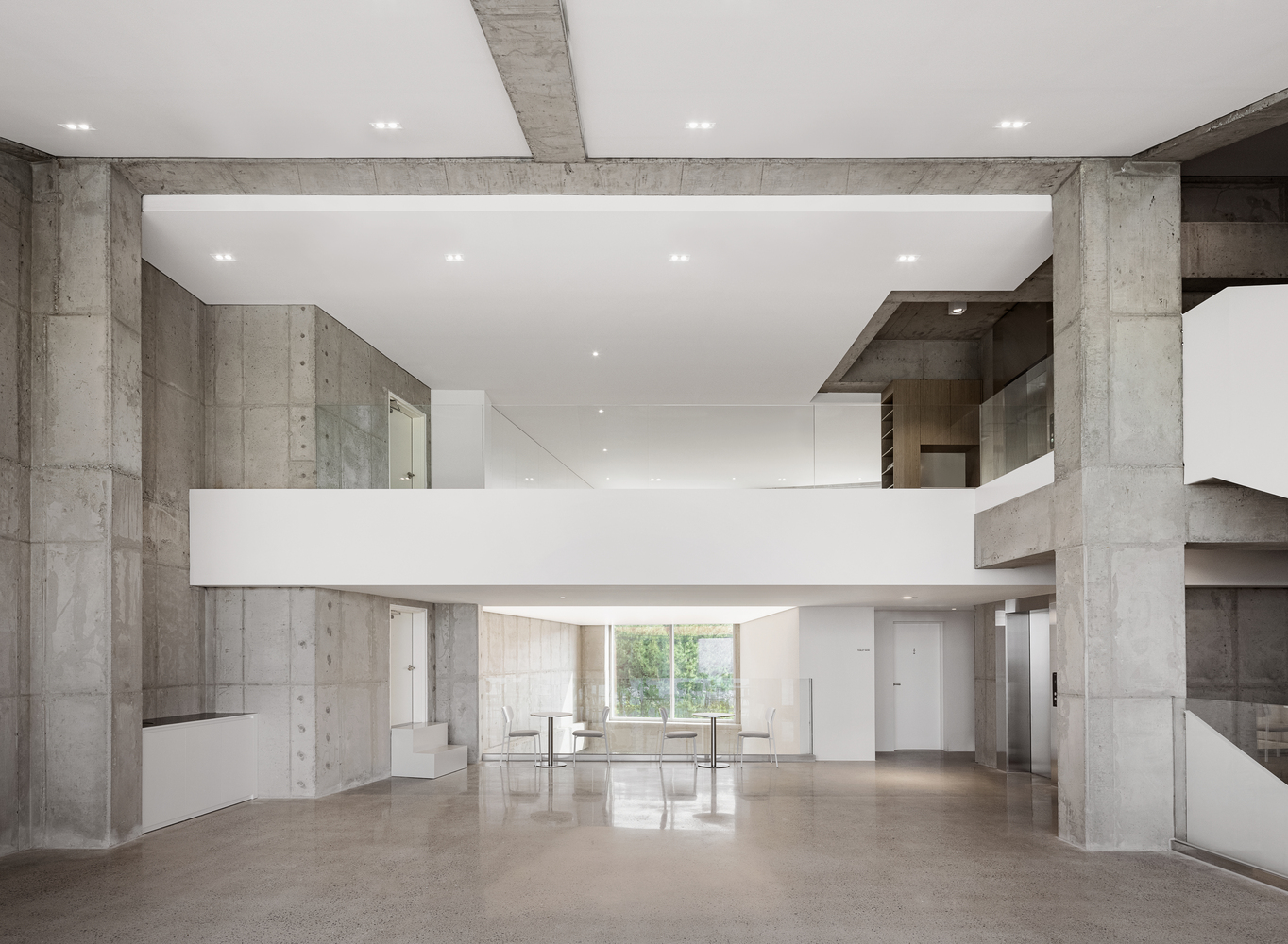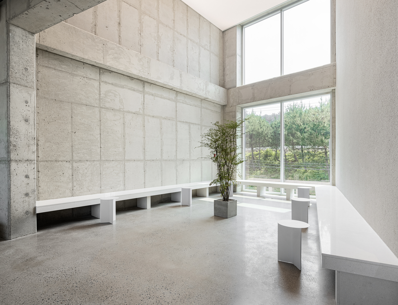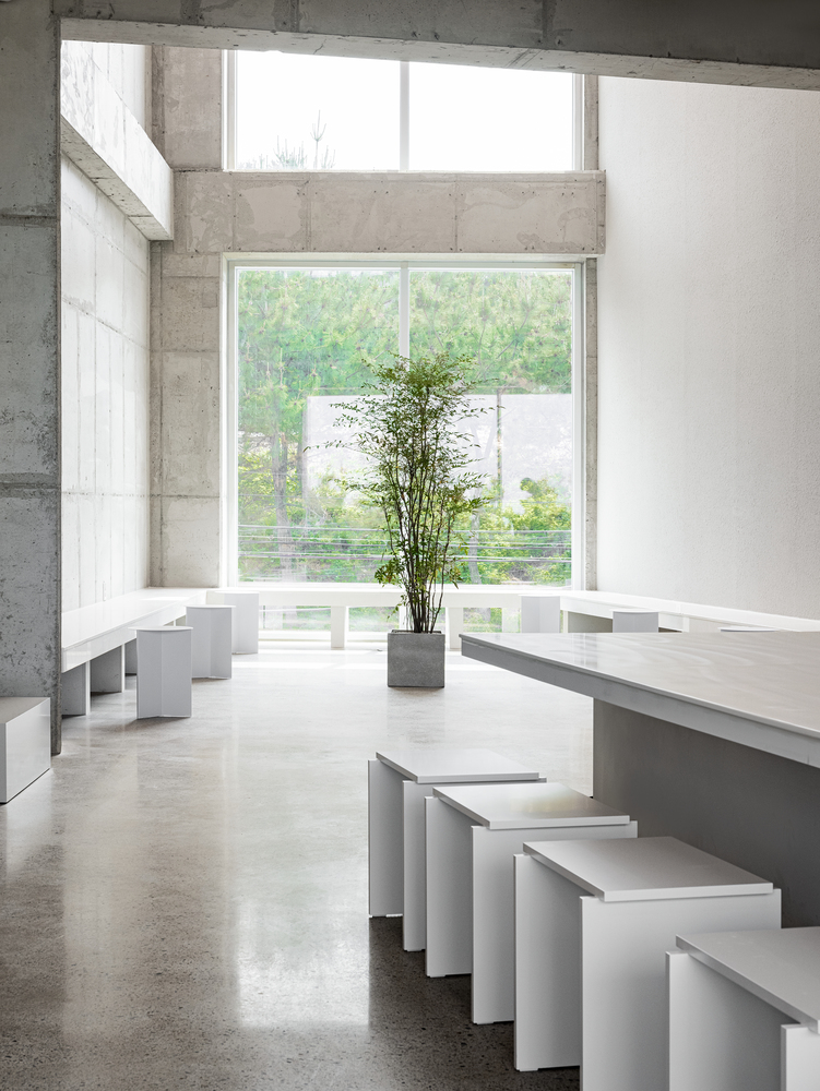 We expressed the basic structure and form with concrete, and as a contrast to this rawness, we applied colors of white to solid and flat features of the furniture, handrails, partial walls, and ceilings. Materials such as barisol, stainless steel, and wood were used as well, but the portion was kept minimum to set the majority of the mood to concrete and white.