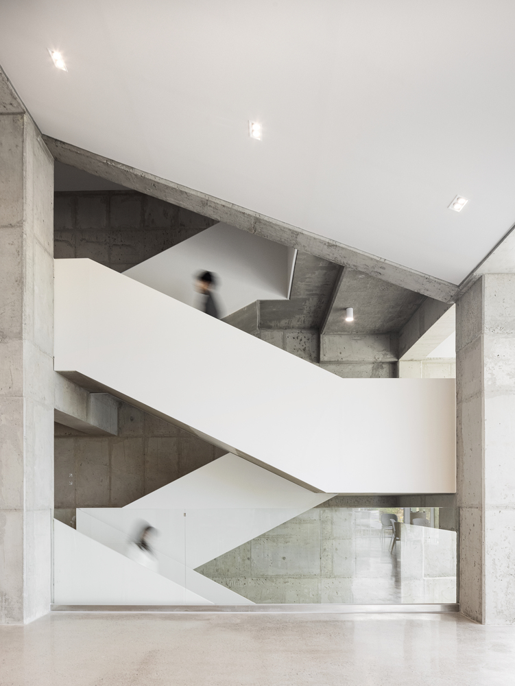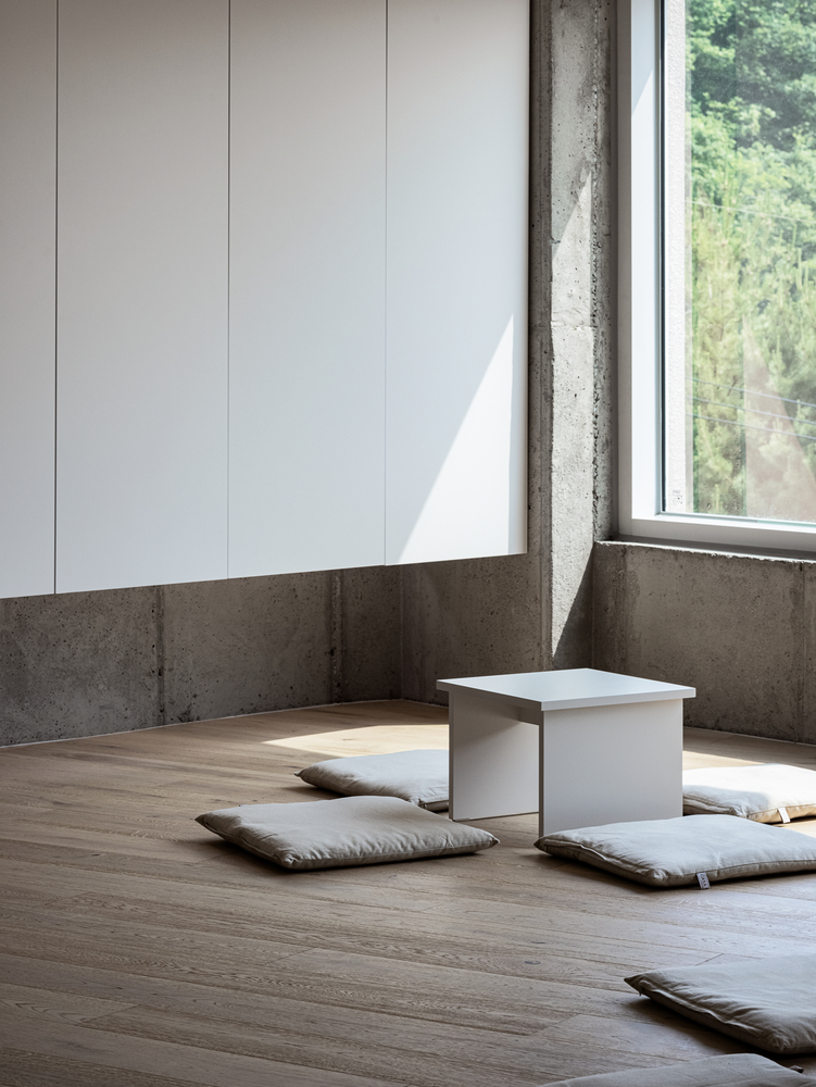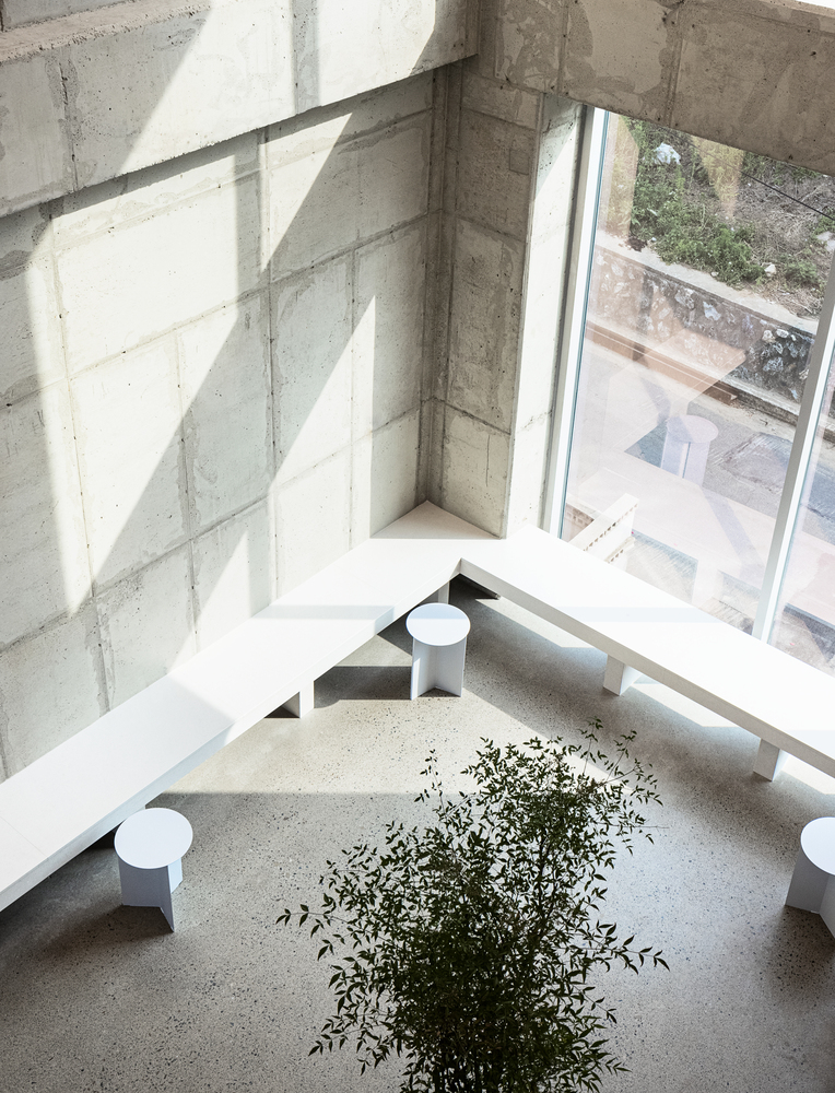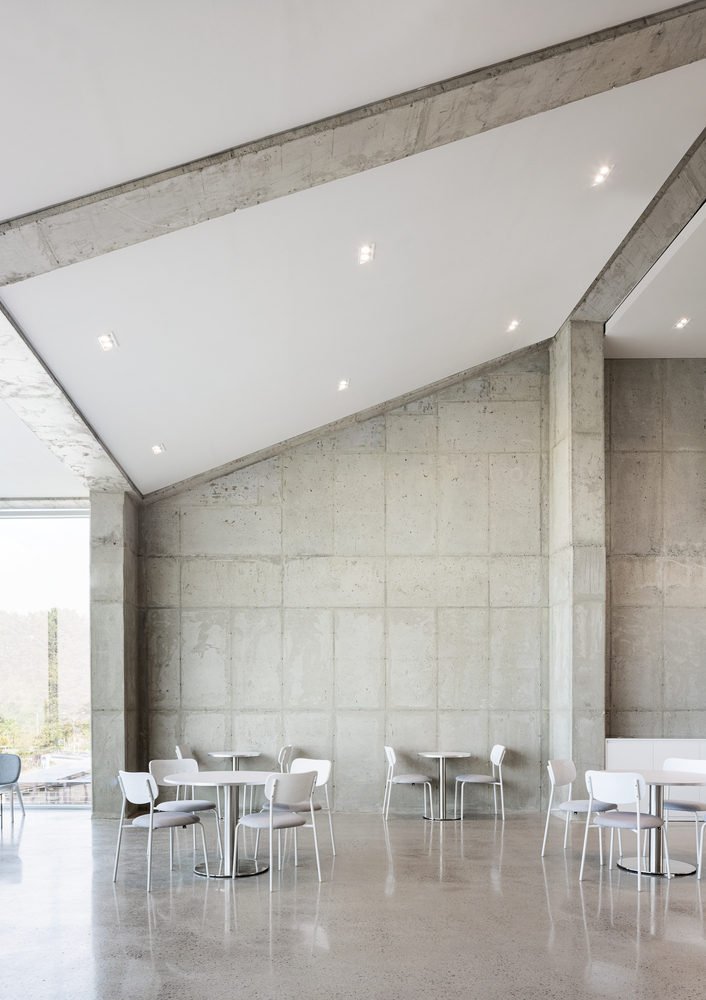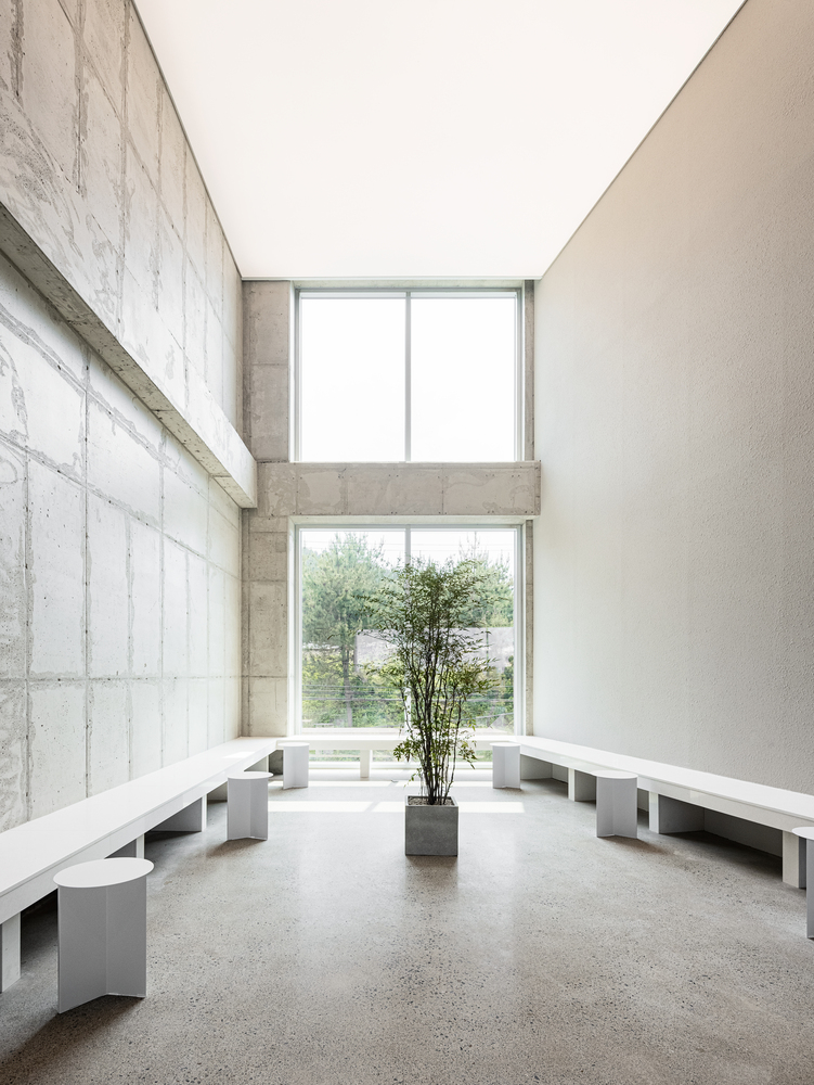 We expressed the basic structure and form with concrete, and as a contrast to this rawness, we applied colors of white to solid and flat features of the furniture, handrails, partial walls, and ceilings. Materials such as barisol, stainless steel, and wood were used as well, but the portion was kept minimum to set the majority of the mood to concrete and white.