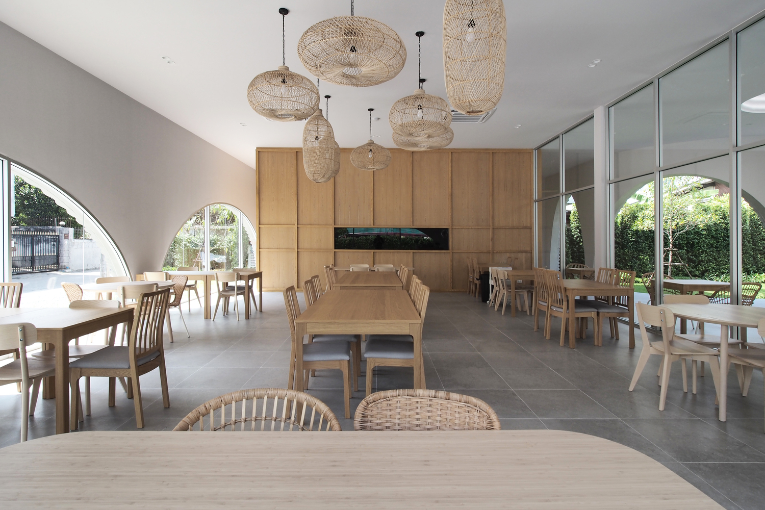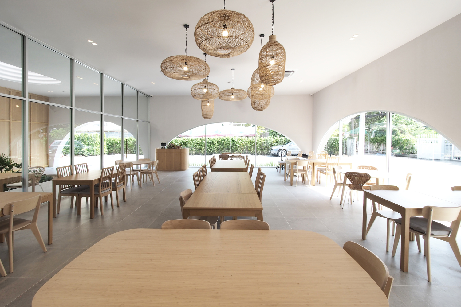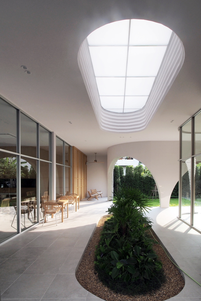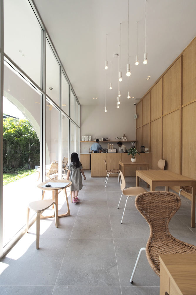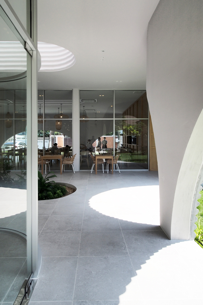 The L-shaped one-story restaurant with approximately 290 square meters tends to hide a private courtyard for a peaceful space from the street. The Khao Niao restaurant + Onda cafe aims to be a new node for the high density of its area by creating a new destination in its neighborhood.