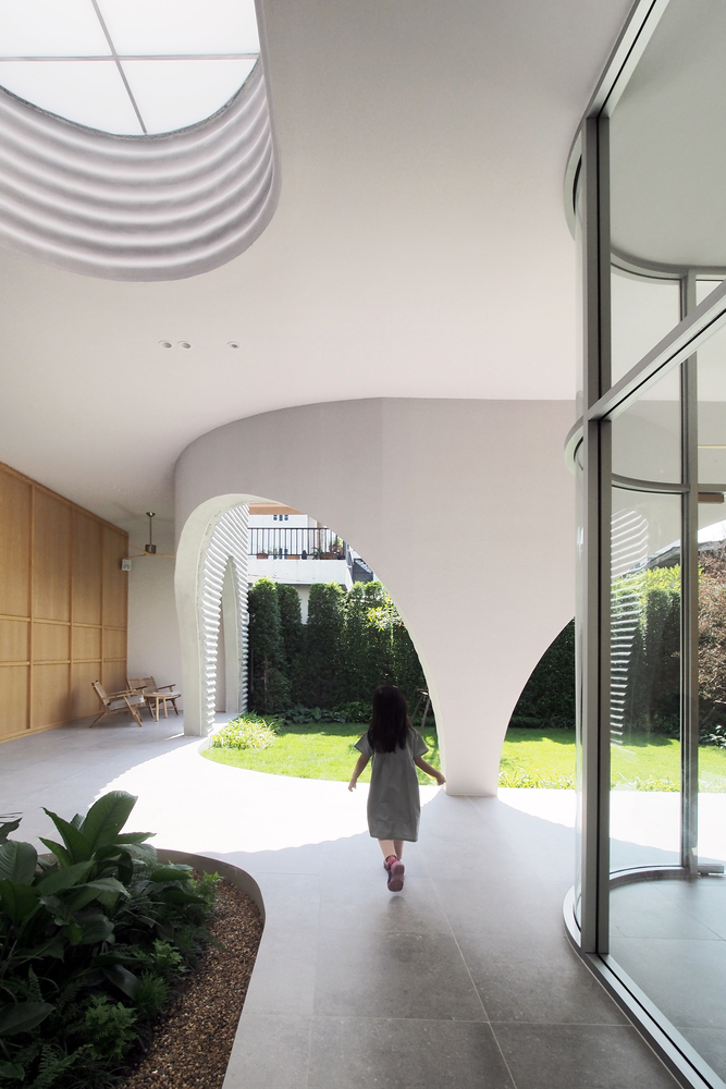 Meanwhile, for a cursory glance, the unique facade metaphorically represents the wave-like (Onda means Wave in Italian) all along the building's elevations. As mentioned before, wavy precast concrete is the main material of this project. In a site experiment, the contractor uses a standard corrugated roof tile as the primary mold casting of 1.20 x 2.40 square meters in a modular size.