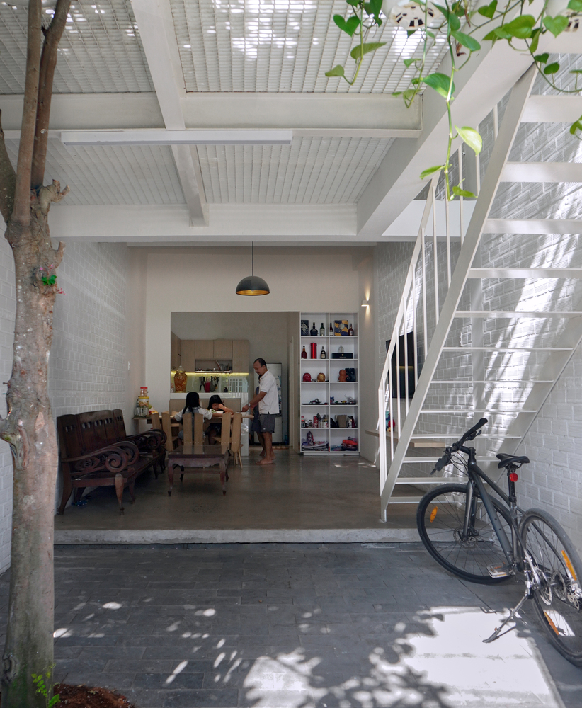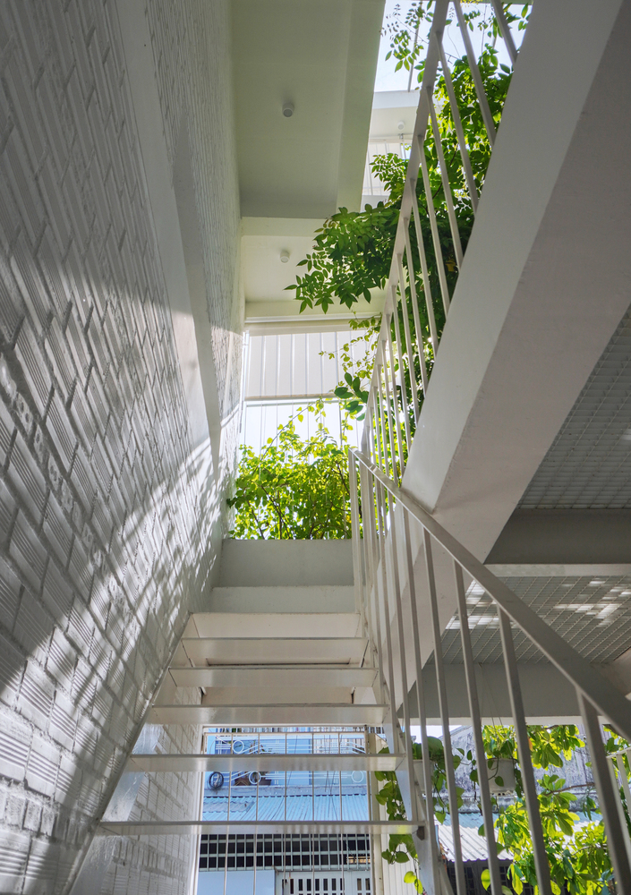 The project brings the quality of living space to a young family in a crowded urban area in Ho Chi Minh City - with a playing space, a studying space for children, a parent's workplace, a vegetable garden, etc. - with the house full of light, trees, natural ventilation.