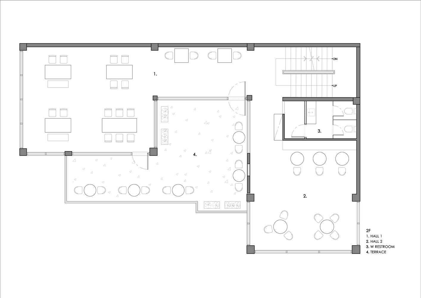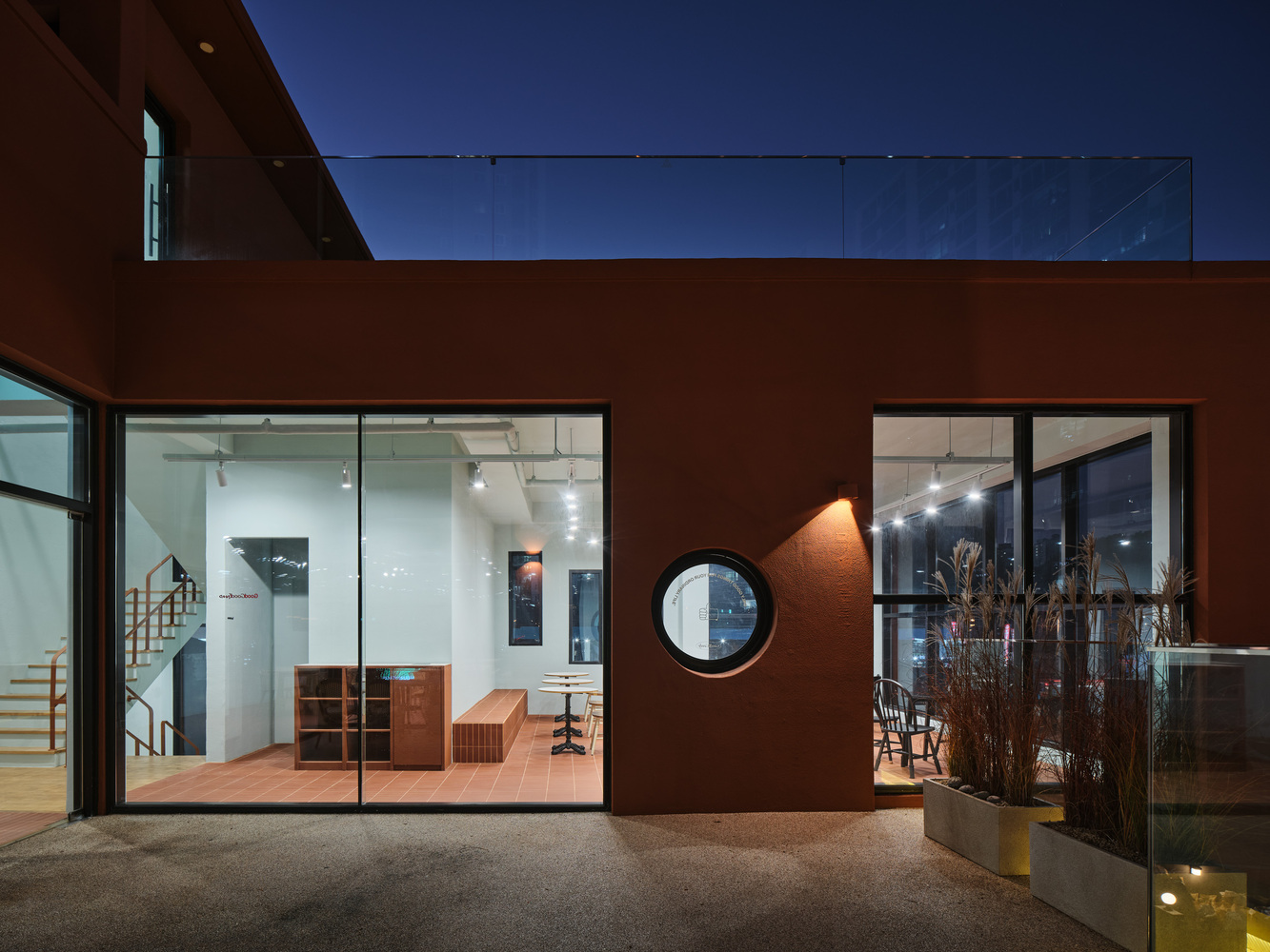 By reflecting the client's opinion that due to the characteristics of a brunch cafe, a spacious kitchen area is needed unlike a general café, it was placed functionally along with the counter, and the terracotta brick tile finish was intended to emphasize the volume of the mass where a sense of unity can be felt.