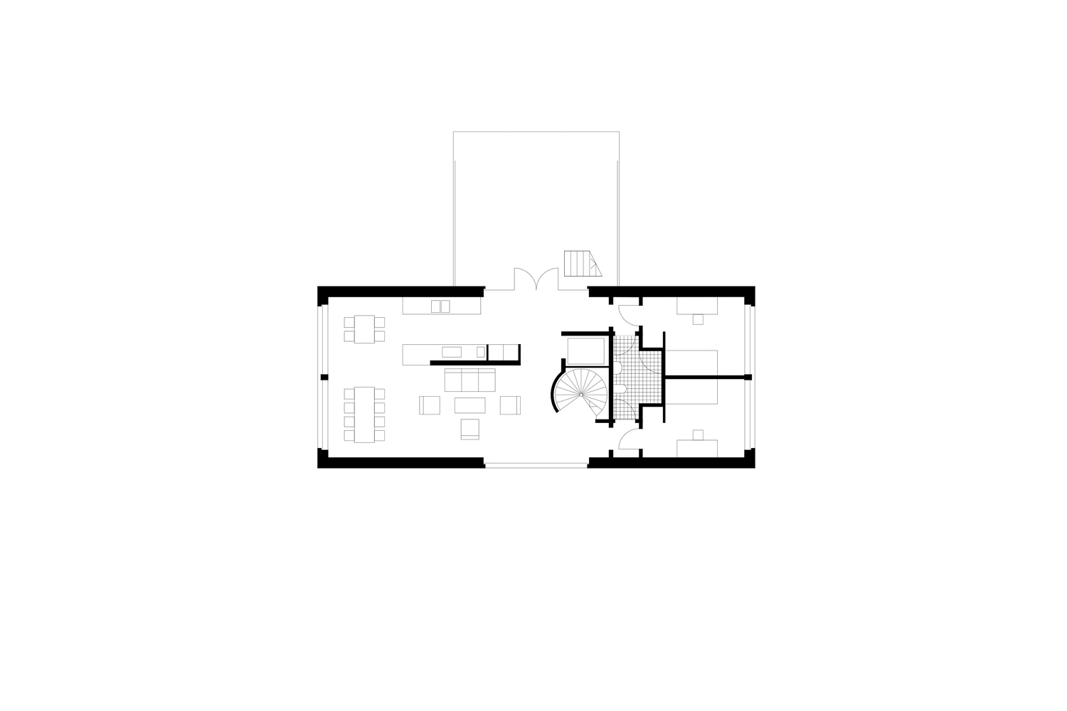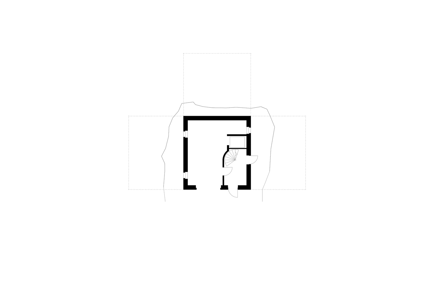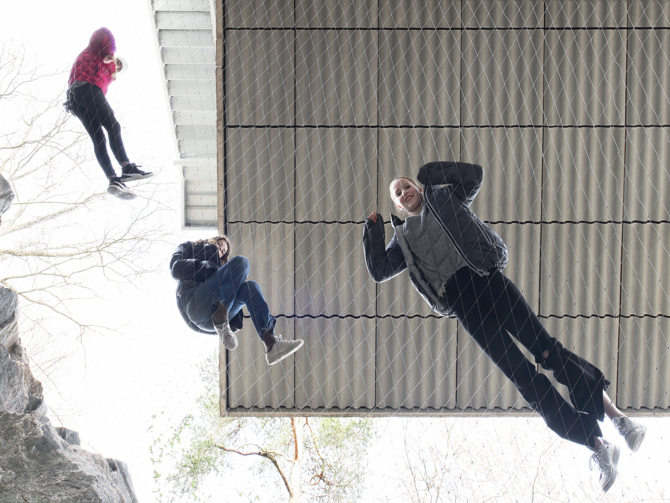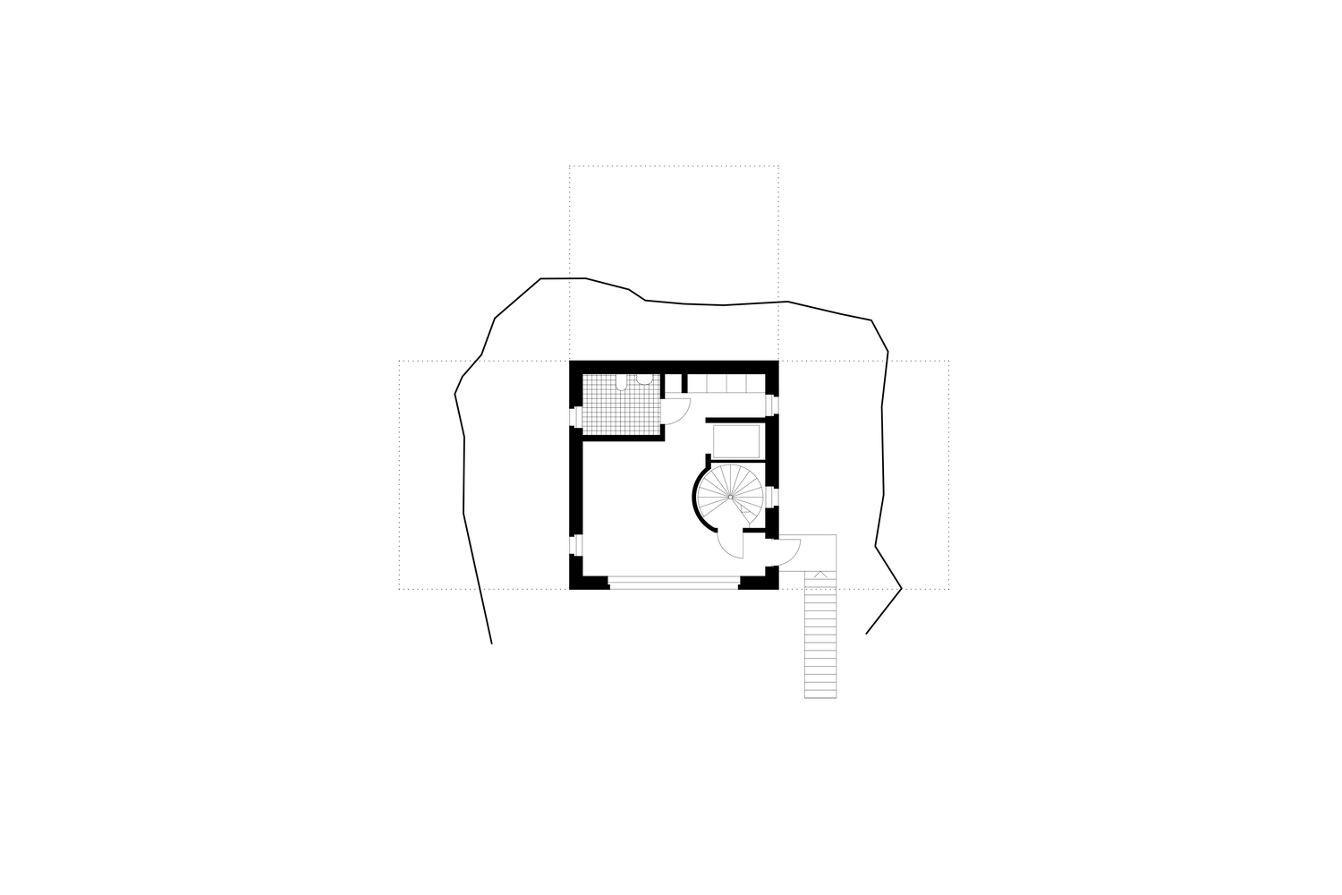 The T-shape enables minimal excavation as it only requires a small foundation at the bottom (Swedish law requires full accessibility with a wheelchair). The shape also provides an advantageous symmetry in the structure which stands independent of itself without attachment to the bedrock. Only the terrace elements are attached to the rock. A prefabricated structure provides a controlled construction process.