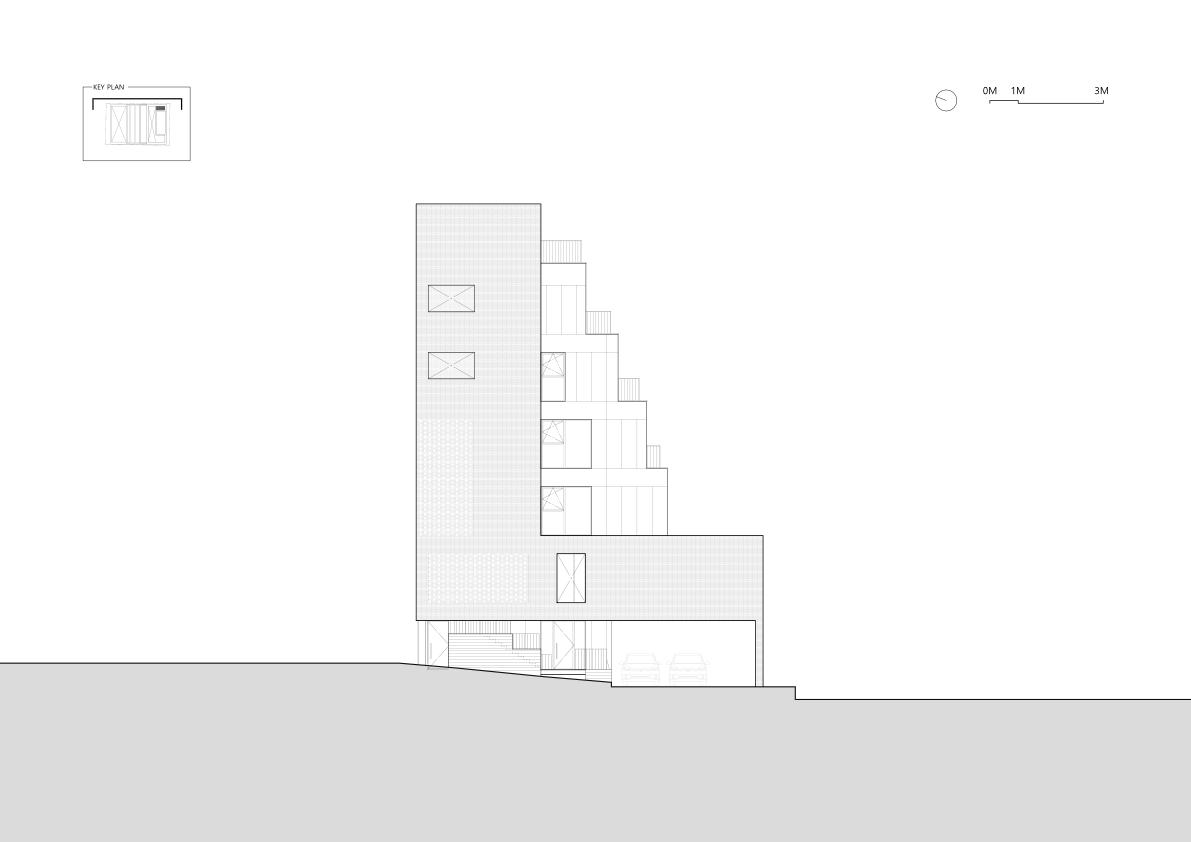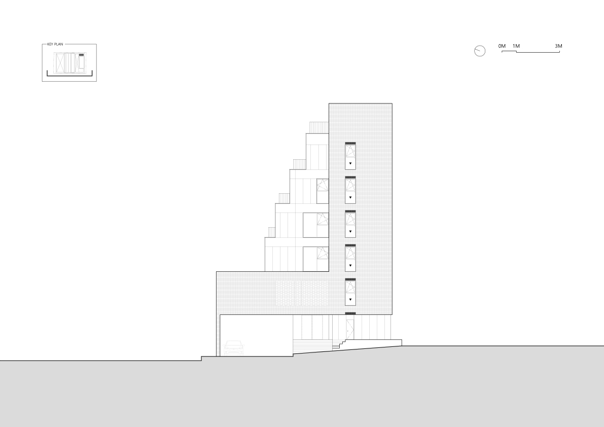 또한, 각 층에 마련된 소규모 테라스는 북향 일조 규제를 활용해 도심 속 휴식을 제공합니다.