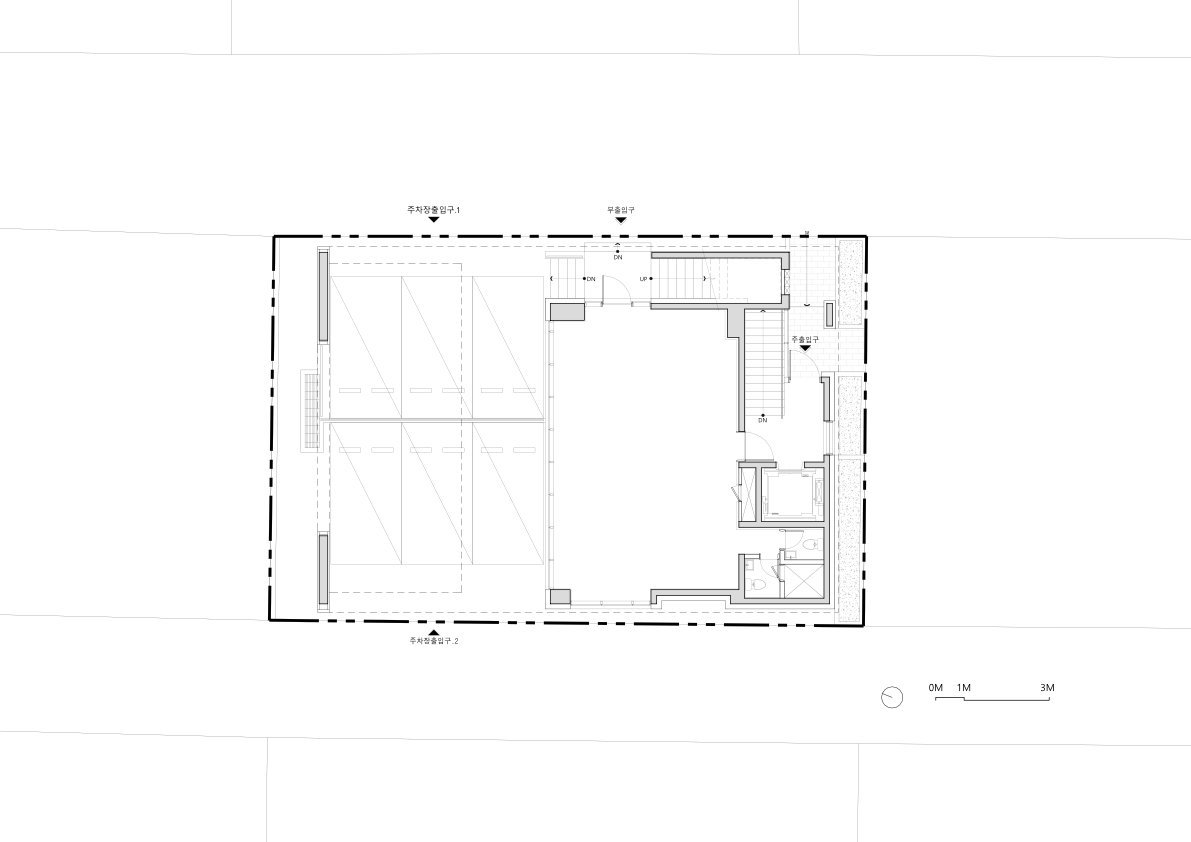 The Seocho-dong Staircase Building is just a step back from the main road near Seocho Station. This location required a design that not only harmonizes with the vibrancy of the city but also blends seamlessly with the older surrounding structures. Additionally, the design had to carefully consider the 4-meter and 6-meter roads flanking the site and the northern sunlight regulations imposed on residential areas.