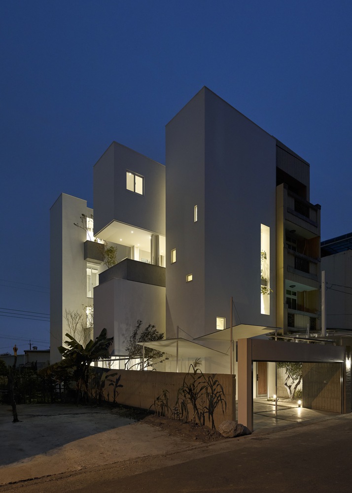 The design deconstructs architecture to integrate with nature. Long street houses are transformed into five staggered volumes with gaps between them. Horizontal and vertical planes formulate floors of different levels, allowing for natural elements to get in. Imagery of valleys is combined with the traditional Taiwanese courtyard, forming the architecture that adapts to wind and sunlight.