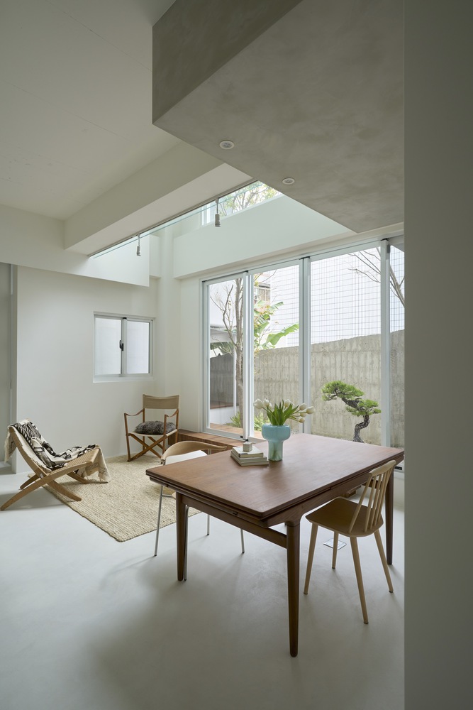 In spaces enveloped by nature, one can fully experience the nThe project is situated among the common standalone buildings in Taiwan: on a long and narrow site with windows on the front and back only, and closely attached to the adjacent buildings, resulting in its disconnection from the external environment. Given the cold and humid northeast wind it faces, the design mitigates the climatic and physical disadvantages for a comfortable living.atural elements in the house