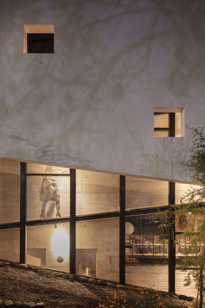 경사진 집은 산티아고의 안데스 산맥 경사면을 수용하는 동시에 가족의 재정적 문제를 반영하여, 삶의 방식과 공간을 재고하는 건축적 해석에서 시작되었습니다. 이 프로젝트는 20년간의 건축 경험을 바탕으로 공동체적 생활과 개인적 공간, 사회적·업무적·사색적 공간의 조화를 목표로 설계되었습니다.