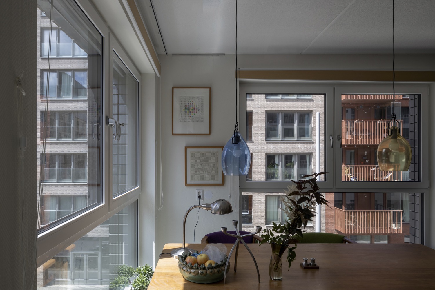 The ensemble explicitly connects to the urban context of Oostenburgereiland and its characteristic dense structure of individual buildings. All buildings have their entrance on the main street of the island, the Oostenburgermiddenstraat. In terms of buildings, the residential tower is the landmark visible from the railway on the north side of the ensemble. The long and narrow corner building on the south side connects the ensemble to the robust scale of the INIT building, which houses among others, the newspaper De Volkskrant and the municipal cleaning service. At the same time, Plot 6 also has an intimate and unique character in the form of the communal courtyard garden. This garden forms a green oasis of tranquility and meeting space for residents, both young and old, amidst the hustle and bustle of this new and vibrant district.