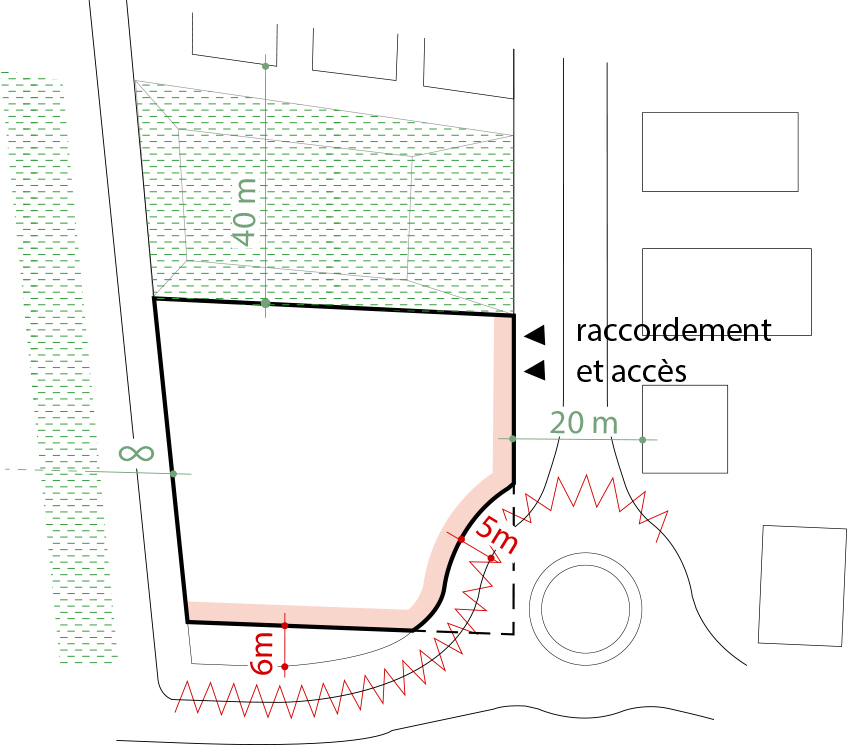 Landscape - The Au Loin project is driven by a shared ambition among local stakeholders: to create a sustainable city where the living environment supports social life, exchanges, relaxation, walking, and leisure. Key features include: 1. A small square that connects the two buildings 2. Planted areas on raised slabs to provide privacy for the ground-floor apartments and to create enough soil depth for proper plant growth 3. A large activity lawn 4. A stabilized area under a pergola 5. A generously planted perimeter with a swale to collect rainwater and ensure level transitions with the surrounding areas. Sustainability is integral to how these spaces are designed. The principle of sustainability is reflected in: Conceptual choices that promote accessibility for everyone, reducing maintenance and cleaning operations, systems for rainwater collection, selecting materials that are raw, durable, and adapted to the local context, and choosing hardy plants suitable for the local and residential environment.