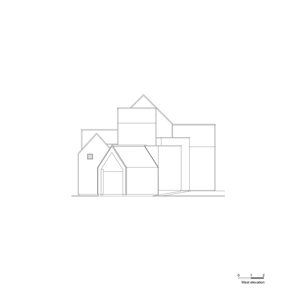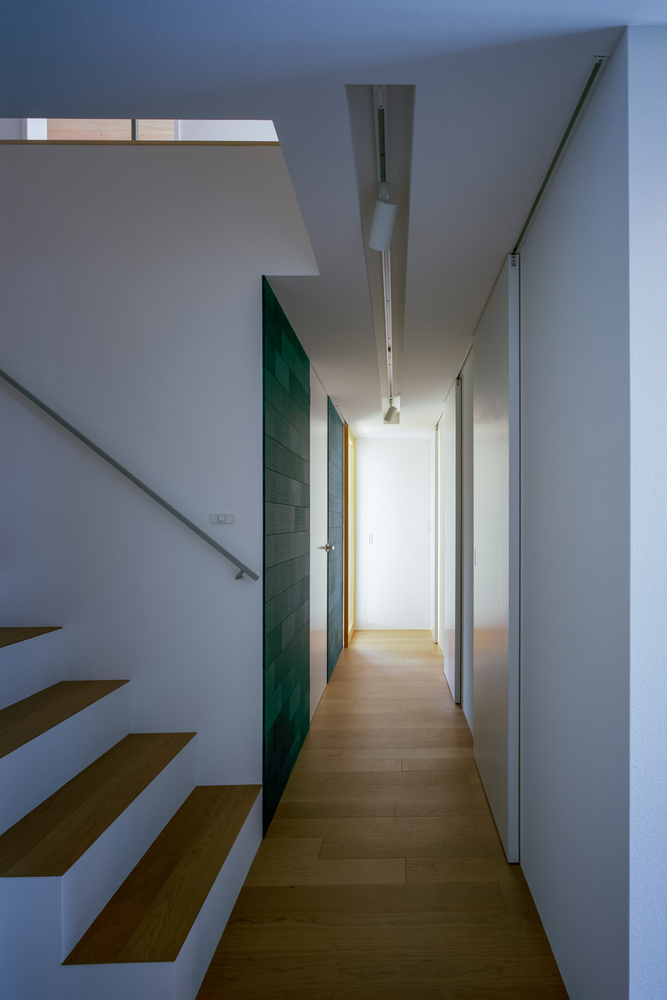 내부에서는 각 매스들이 서로 충돌하고 겹치며 공간적 변화를 만들어냅니다. 거주자는 일상의 동선 속에서 이러한 변화를 자연스럽게 체감할 수 있습니다. 또한 예산 제약으로 인해 전문적인 방음 시설을 완벽하게 설치할 수는 없었으나, 음악실을 다른 실들로 둘러싸는 방식으로 방음을 강화했습니다.