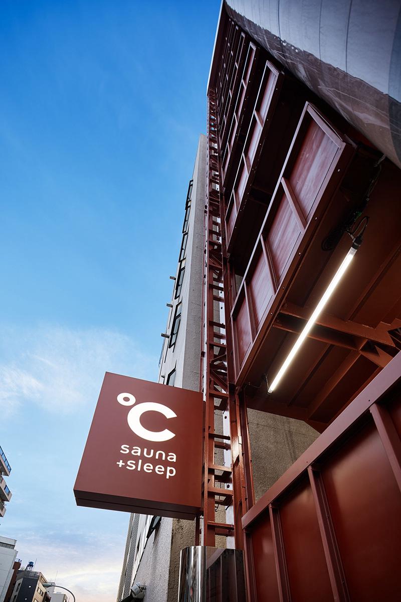 "℃ (Do-C)" is a new business launched by nine hours, a company running a capsule hotel chain "9h (nine hours)" in the Tokyo metropolitan area. While the 9h hotels offer a new image of a contemporary capsule hotel by completely redesigning and building new capsules from scratch, the company decided to take a different approach in designing ℃ and asked us to renovate an existing capsule hotel. Our design aims to eradicate the image of the old capsule hotel by changing the interior and surroundings, while keeping the existing capsules as they are. The color of the existing capsules –– an old-fashioned beige reminiscent of the retro design period –– was rather difficult to handle, but we intentionally used it as a base color for the interior to eradicate the impression of the existing capsules. In Japan, people often stereotypically associate capsule hotels with saunas due to the conventional style of capsule hotels in the past. The existing building was actually not equipped with saunas, but we intentionally recreated the stereotypical image by adding saunas there, while eradicating the conventional impression, to establish a powerful combination of capsules and saunas representing the identity of ℃.