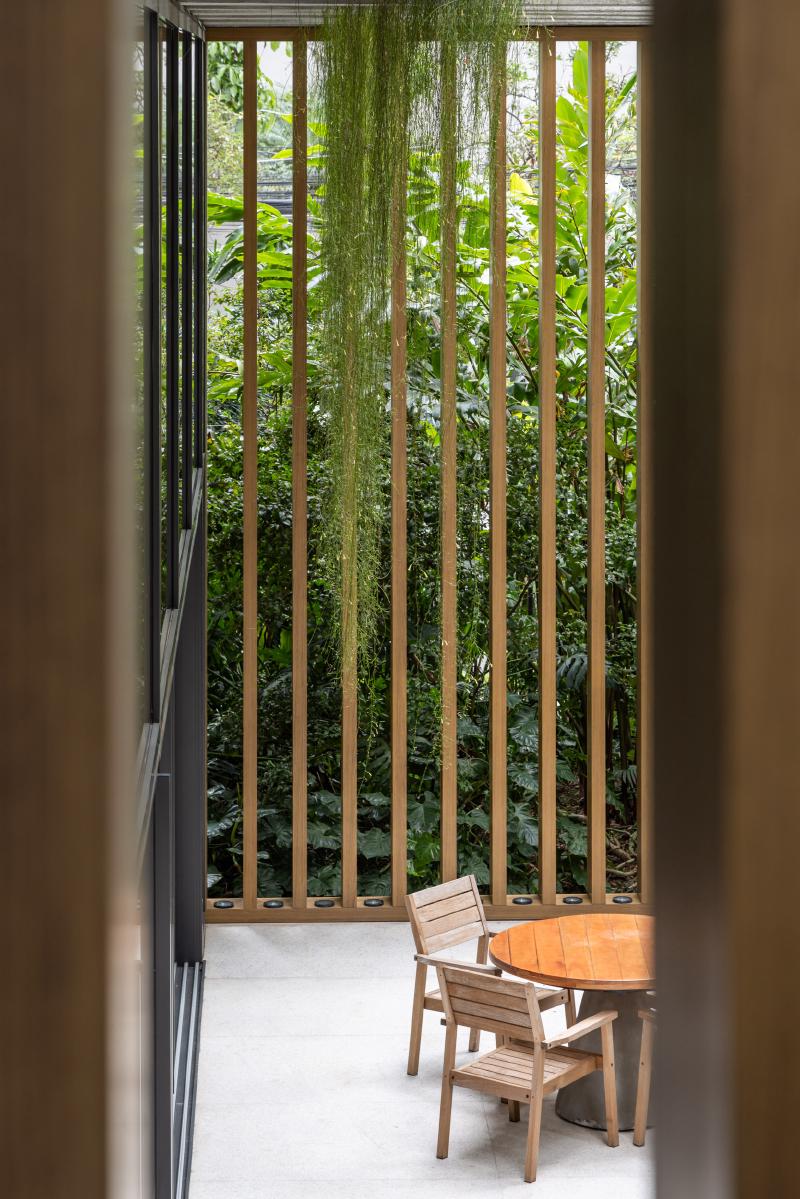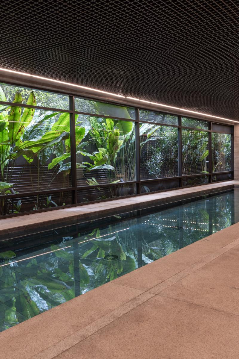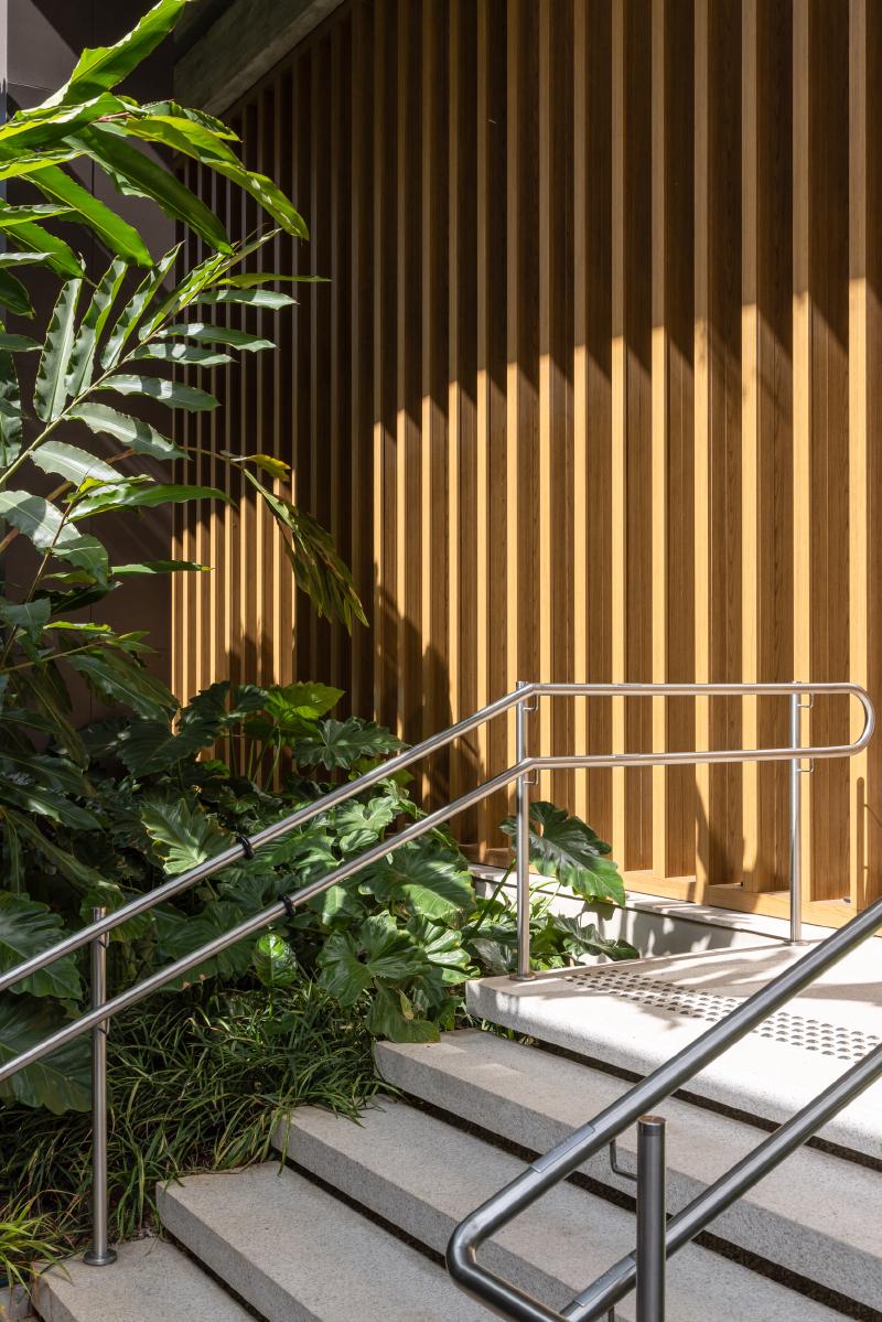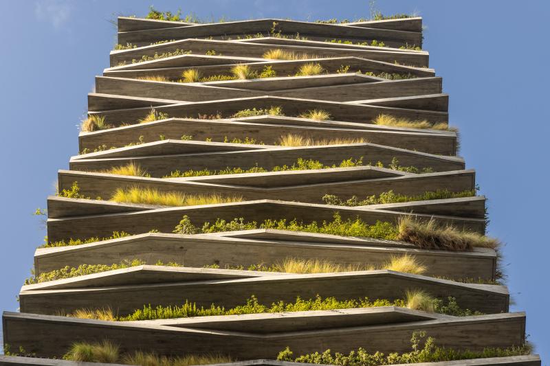 모든 층의 슬래브를 따라 파사드에 플랜터를 통합함으로써, 녹지는 장식 요소가 아닌 건축을 구성하는 핵심 요소로 작동한다. 조경은 일조, 바람, 미기후를 고려해 설계되었고, 브라질 토착 식물을 중심으로 한 다양한 식재가 연중 변화하는 살아 있는 입면을 만든다. 자동 점적 관수와 고배수성 토양 시스템을 통해 유지 관리 효율도 확보했다.